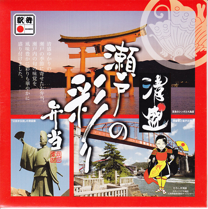 2012年のNHK大河ドラマ「平清盛」の放送開始を前に、2011(平成23)年11月18日に販売を開始。平清盛にちなんだ風景写真3点と、大河ドラマ「平清盛」広島県推進協議会が定めたイメージキャラクター「ひろしま清盛」のイラストなどを印刷したふたを使用する。正方形9区画の中身は、赤飯、タコ飯、アナゴ飯、じゃこ飯、スズキ塩焼きと玉子焼、イワシ南蛮漬、ゴボウやコンブなどの煮物、鴨やネギなどの焼き物、サツマイモや煮豆などの甘味。