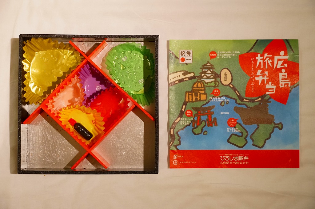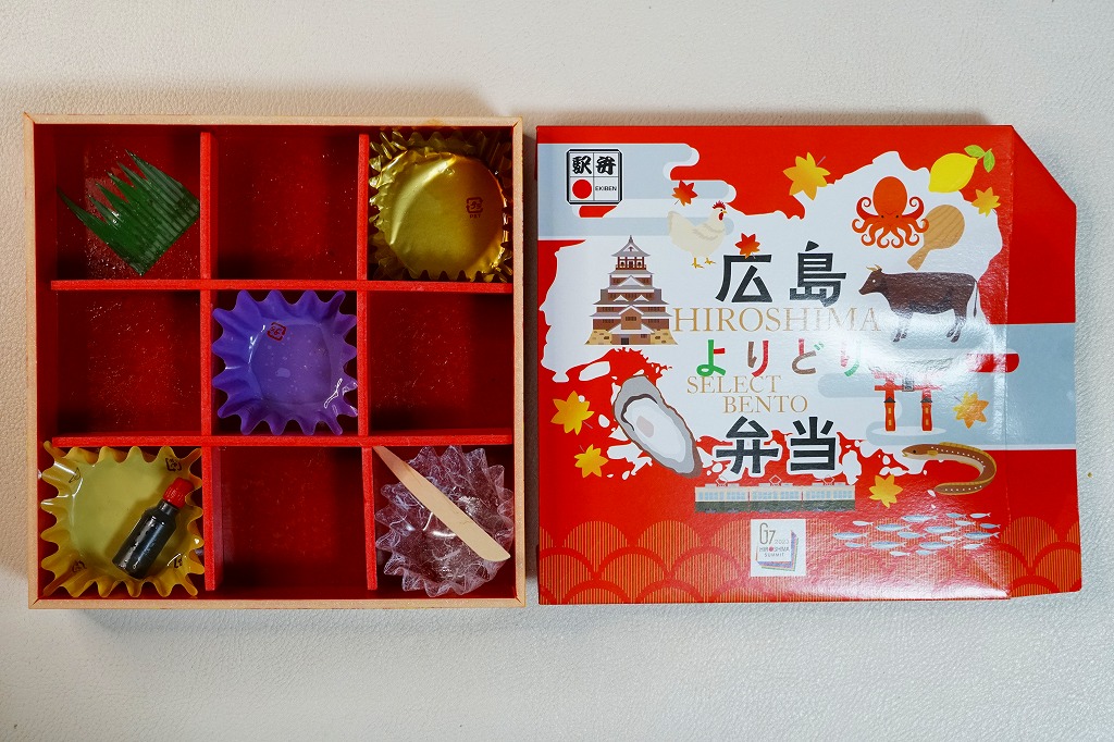見ても食べても、知らなければふたの裏を読んだり表を眺めたりすれば、これは確かな広島満載。広島で定番の幕の内駅弁「もみじ弁当」よりも観光客向けの、しかし食事の用途に向いた駅弁として、サミットが終わっても販売が続くのではないかと思う。実際に広島市のグランドプリンスホテル広島で5月19日から21日まで開催された第49回先進国首脳会議が終わっても、この駅弁が東京で買えた。