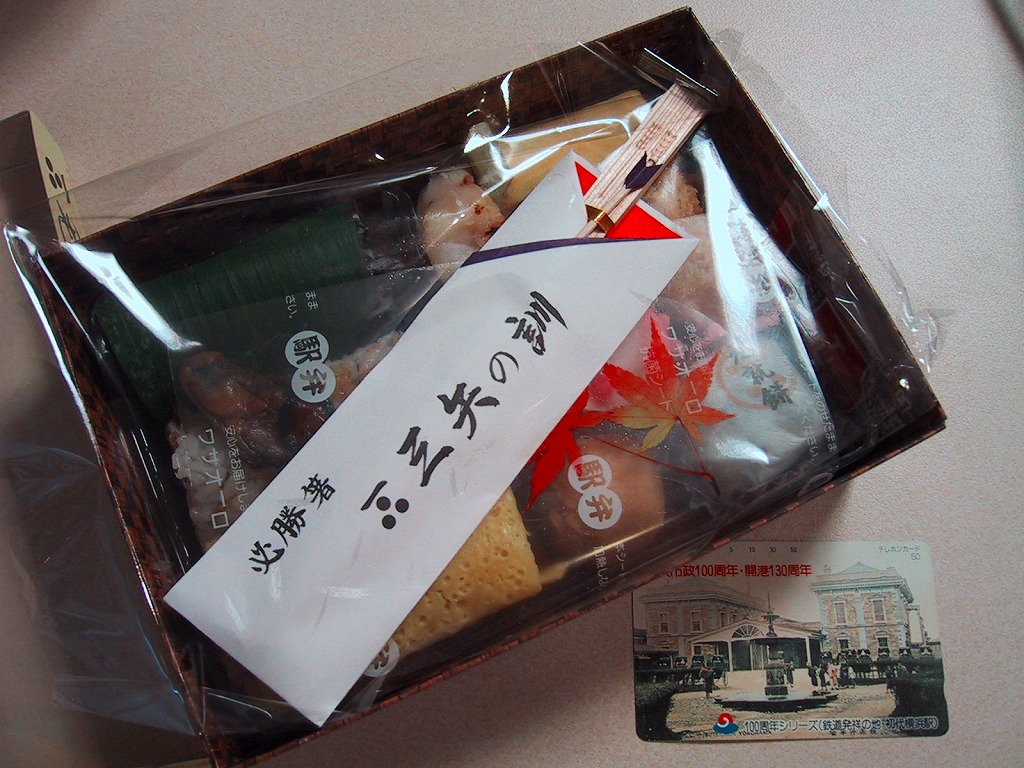 この駅弁は京王の駅弁大会で、渚滑の帆立貝、洞爺の北寄貝とともに「対決 貝三昧」を演じたが、山積み状態の前二者に対して要整理券で長蛇の列ができたこの駅弁が、見た目では完勝だった。販売個数の公開が待ち遠しい。現在は売られていない模様。