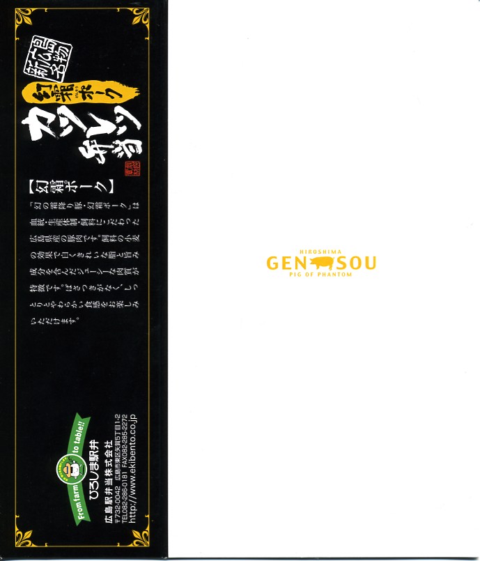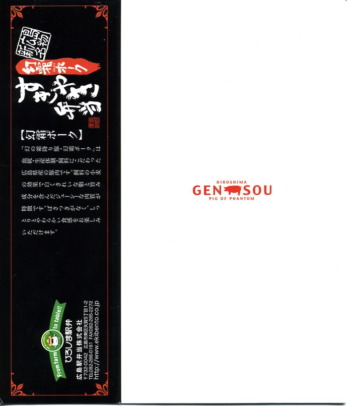 中身は白御飯の上に霜降り豚肉のすき焼きを詰め、温泉玉子をひとつ付け、豚型のタレと紫キャベツの酢の物を添える。豚肉なのにクールに溶ける脂身と柔らかい赤身が心地良い高級豚丼。しかし今のところは、広島と豚肉が結び付かないため、ここのカキ駅弁や他の牛肉駅弁と同じ値段である点に割高感もある。現在は売られていない模様。