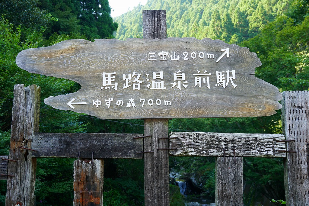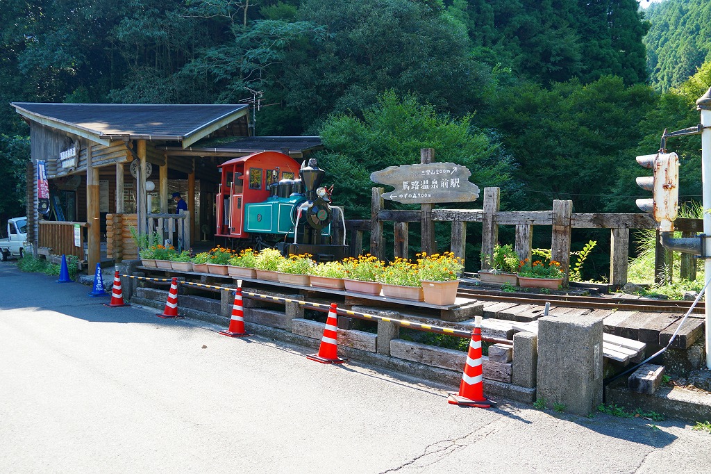 高知駅からごめん・なはりの列車と高知東部交通バスを乗り継いで約2時間。馬路村は高知県の東部山あいに位置する、人口約700人の村。全村がほぼ森林であり、昭和時代には魚梁瀬森林鉄道が魚梁瀬杉を積み出し、その遺構が2009(平成21)年6月に国の重要文化財に指定された。村の馬路地区に馬路温泉があり、その近くで日曜日に観光用の森林鉄道が周回し、その乗り場を駅に見立て、「駅弁」を温泉で予約販売する。1994(平成6)年開業、高知県安芸郡馬路村馬路村馬路。
