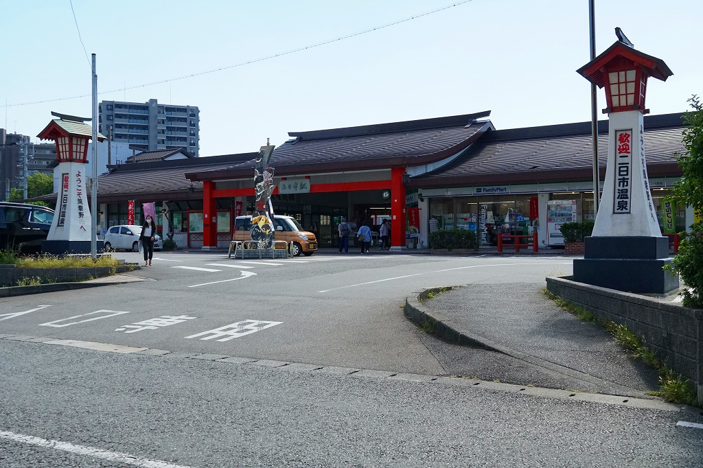 博多駅から鹿児島本線の電車で約20分。二日市駅のある筑紫野市は、福岡県の中央部に位置する、人口約10万人のベッドタウン。二日市は太宰府に近く、古来から九州を縦貫・横断する街道に位置する宿場町であり、市場や温泉でも栄えたが、今ではすっかり福岡や久留米の郊外の住宅地になった。鳥栖駅の駅弁が1969年から1986年まで売られたほか、1920年代かそれ以前に構内営業者がいたらしい。1889(明治22)年12月11日開業、福岡県筑紫野市二日市中央一丁目。