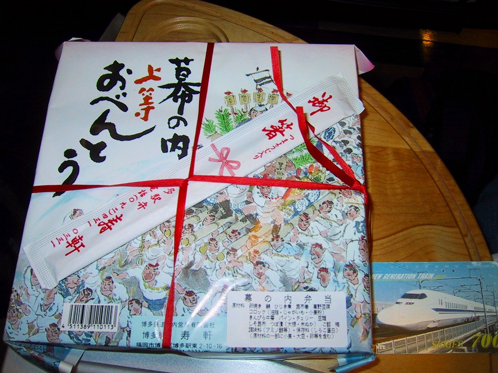 2010年代までには博多駅で発売か。市販の仕出し弁当向けボール紙容器に「幕の内弁当」のシールを貼り、食品表示ラベルでの品名も「幕の内弁当」とある。中身は日の丸俵飯に、焼鮭、かまぼこ、玉子焼と、レンコンやタケノコなどの煮物、有頭海老、串カツ、おくら海鮮詰フライ、肉団子、きんぴらごぼう、鳥栖の焼麦(しゃおまい:焼売)2個、煮豆、大根漬で、これもやはり幕の内弁当そのもの。調製元は鳥栖駅弁の中央軒だが、博多駅でのみ売られる駅弁。紹介例が公式にも非公式にも皆無でも、こうして大駅の実需を担う。