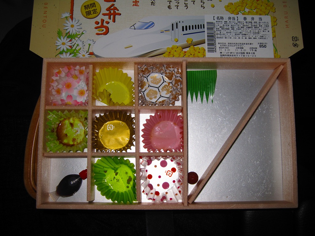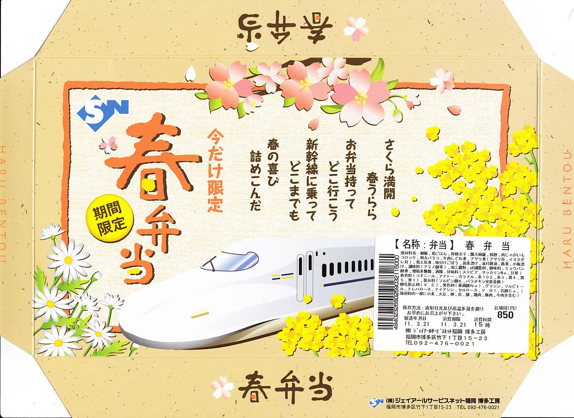 これは九州新幹線開業記念駅弁ではないと思うが、ふたに「今だけ限定」「期間限定」「さくら満開」と書いたり、九州新幹線向けN700系電車の顔を描くなど、開業フィーバーに便乗した。中身はおいしくきれいであり、季節で回す定番の実需向け駅弁として、今後もやっていけると思う。2014年までの販売か。