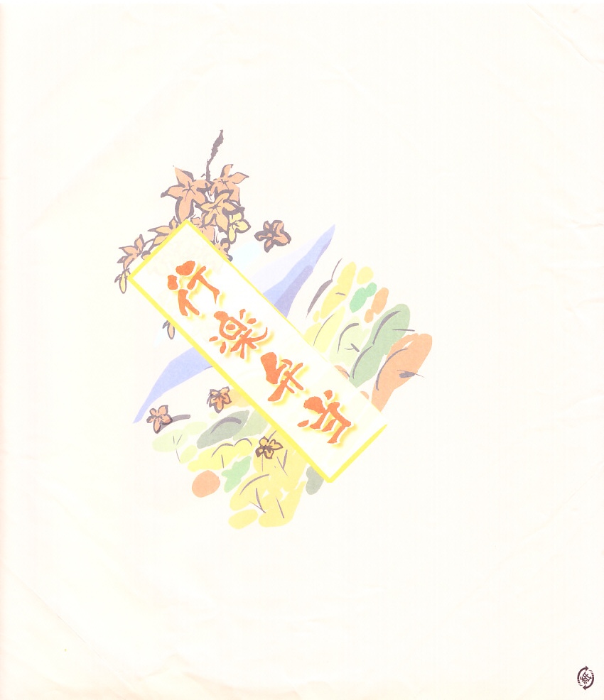 入手状況から1993(平成5)年4月13日15時の調製と思われる、昔の博多駅弁の掛紙の一部。上等の幕の内駅弁だろうか。