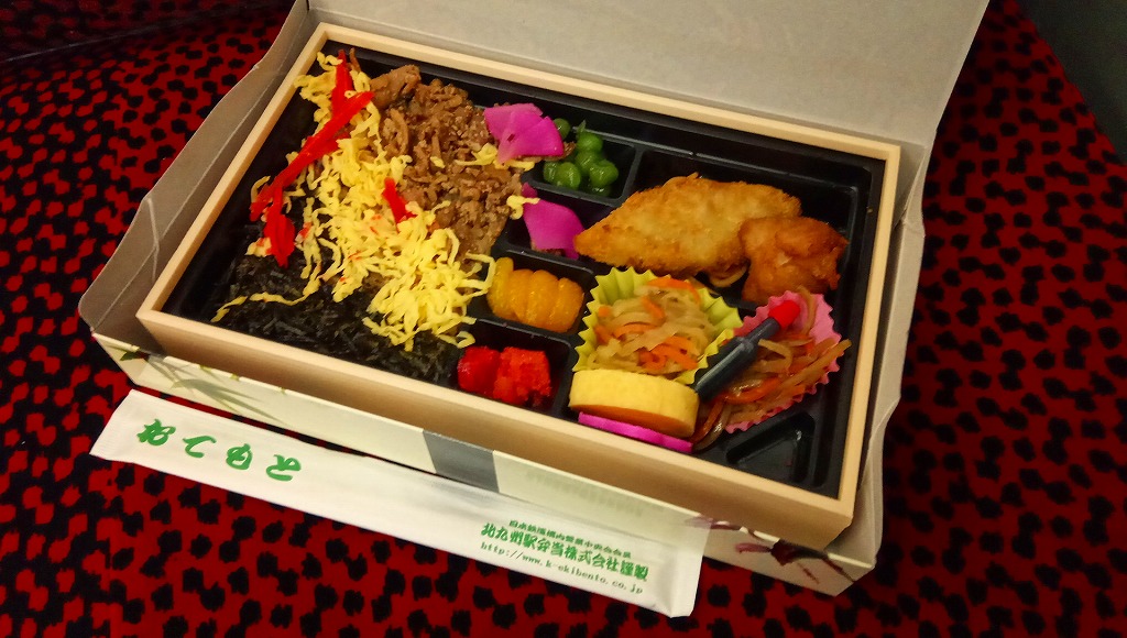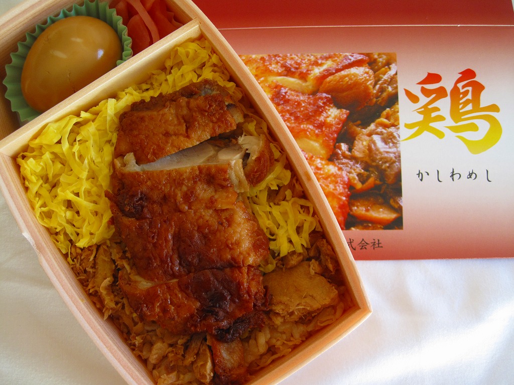 駅弁の名前にニワトリが2羽いたり、御飯の上のストライプに刻み海苔がなかったりと、これは北部九州名物のかしわめしでない感じ。しかし名古屋駅弁で見たタイプの、揚げてから切る大きな鶏唐揚の旨さは光る。伝統にこだわらないこんな見栄えや内容や味があってもよい。2013年までの販売か。