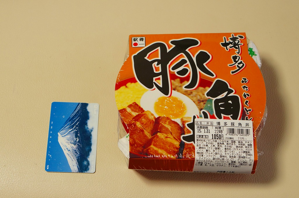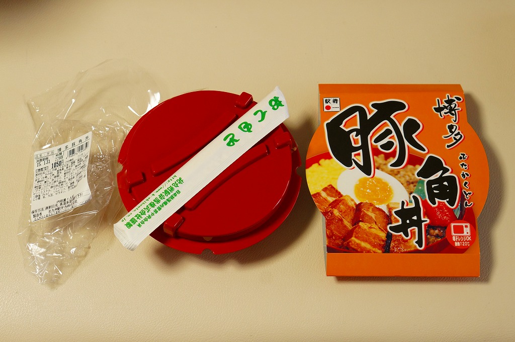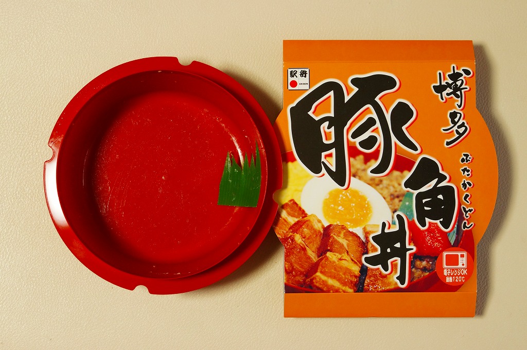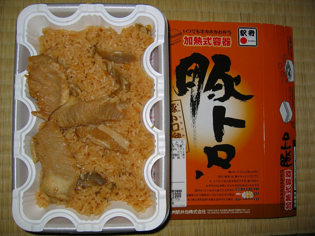 2004(平成16)年頃に発売か。長方形の加熱機能付き容器をオレンジ色のボール紙枠にはめる。中身は豚トロ御飯に豚トロ照焼が数個載るだけの、寂しいくらいシンプルな内容。味もパッケージ記載「油がのっているのに歯ごたえがあり」というよりは、にゅるにゅるしてるのに筋が硬くて噛み切れないという感じ。これが好きな人は好きだろうが、販売面では苦戦するタイプか。数年間で売り止めたのではないだろうか。