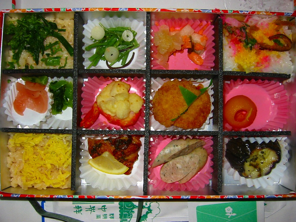 2003年11月限りで、久留米駅弁の調製や販売が、久留米中央軒から鳥栖駅の中央軒に引き継がれ、この駅弁も写真のとおり現在は中央軒の調製。2006年の購入時で、容器や中身や850円の価格に変化はない。2015年時点で博多駅の駅弁となり、価格は930円。