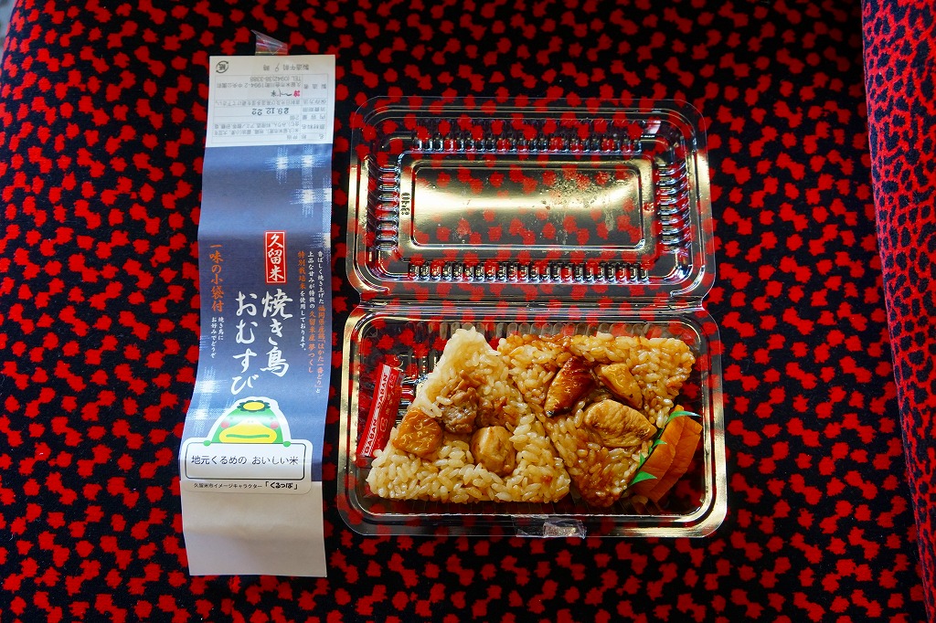 博多駅から九州新幹線で17分。久留米市は福岡県の南部で筑紫平野の中心に位置する、人口約30万人の商業都市。久留米絣やゴム工業などの工業都市でもある。駅弁は明治時代から売られ、1925年に営業を引き継いだ駅弁屋が、鳥栖の駅弁屋と合併と分離を経て2003年に再吸収。2011年3月の新幹線の開業で、鳥栖駅とは異なる駅弁が、コンビニや観光案内所で売られた。1890(明治23)年3月1日開業、福岡県久留米市城南町二丁目。