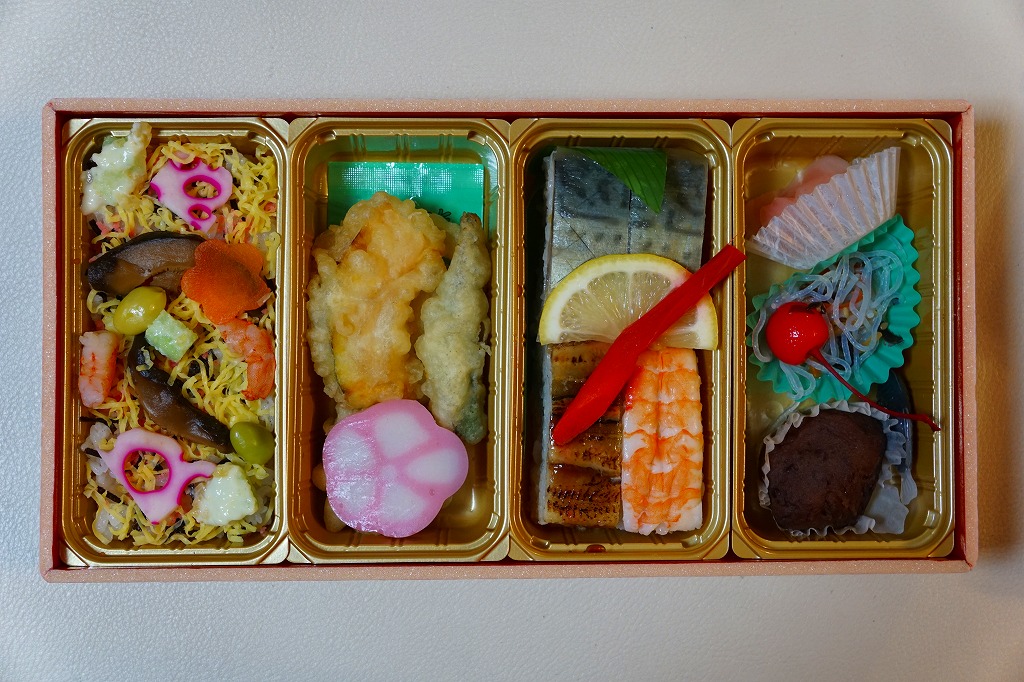 2016(平成28)年10月1日に発売、同日開始のJR九州の駅弁キャンペーン「第12回九州駅弁グランプリ」にエントリー。サクラ柄の大きな折箱にサクラ色の掛紙を巻き、4区画の中身は左からちらしずし、オクラ、カボチャ、シイタケ、レンコンの天ぷら、サバとアナゴとエビの押し寿司、おはぎと春雨サラダ。中身も華やか、値段はもっと華やか。話題になることなく、収穫報告もほぼ聞かれず、キャンペーンの終了とともに半年間ほどで売り止めた模様。