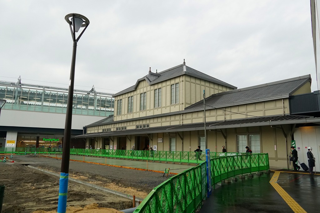 掛紙にあるとおり、この駅弁の主題は折尾駅舎。1891(明治24)年の駅の開業とともに建てられ、1916(大正5)年に増改築されたという木造駅舎は、2011年当時でも現役で使用されており、21世紀のICカード対応自動改札機や昭和の駅弁売店と共存していた。2004(平成16)年から18年間で総額830億円を投入する折尾地区総合整備事業により、仮設駅舎の用地が確保でき次第解体される予定だという。