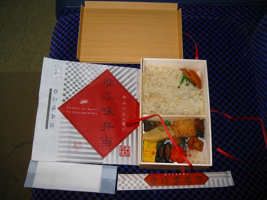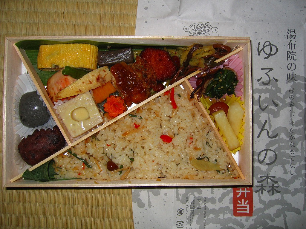 博多駅と由布院駅や大分駅を結ぶ特急列車「ゆふいんの森」のビュッフェで販売された車内限定弁当。経木枠の長方形の容器に木目柄のボール紙でふたをして、弁当の名前を大きく書いた掛紙で包む。中身は山椒御飯におからコロッケ、サバ竜田揚、タケノコやカボチャなどの煮物、玉子焼、大根なますなど。分量と刺激を抑えてスッキリした内容と風味を持つ。この弁当は「弁当製作会社の都合により」、つまり調製元の撤退により、購入日の翌日である2011年1月1日から販売が見合わされている。