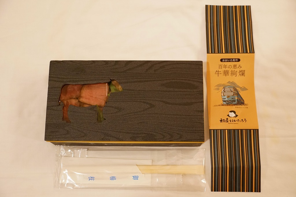 2021(令和3)年10月22日に、博多駅と由布院駅や別府駅を結ぶ特急列車「ゆふいんの森」の車内販売でのみ売られる弁当として発売。車内限定、事前予約限定、購入には座席の指定と2日前までの予約が必要な弁当とされるが、予約なしに列車内の売店で買えることがある。駅で売られる弁当でないが、2022年のJR九州の駅弁キャンペーン「第13回九州駅弁グランプリ」にエントリー。ふたに牛型の窓を持つ黒いプラ容器に、列車を描いた掛紙を巻く。