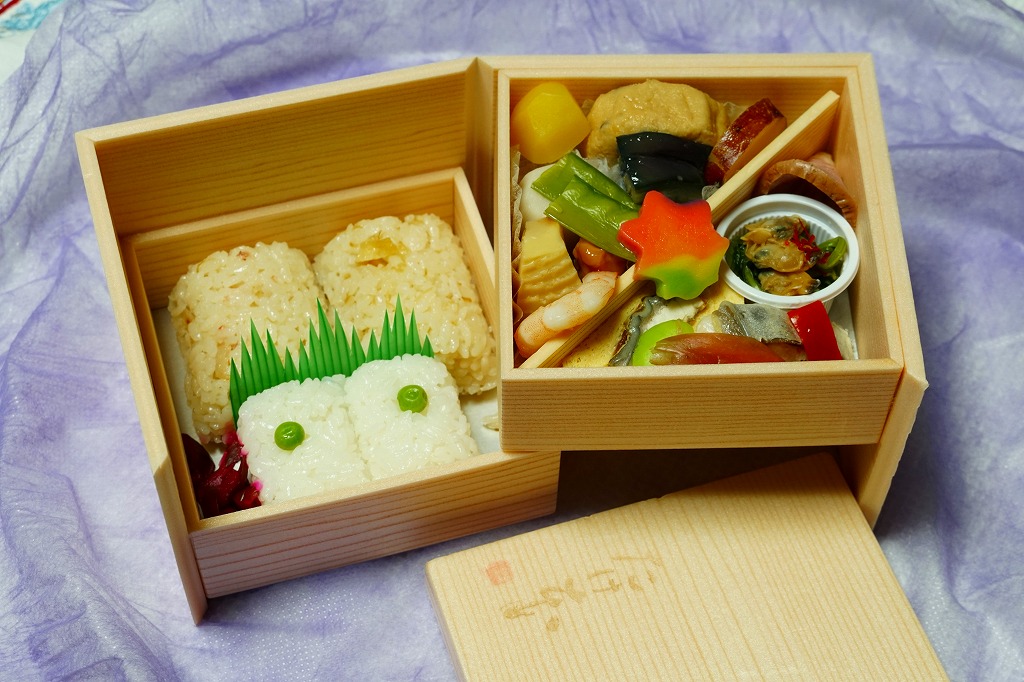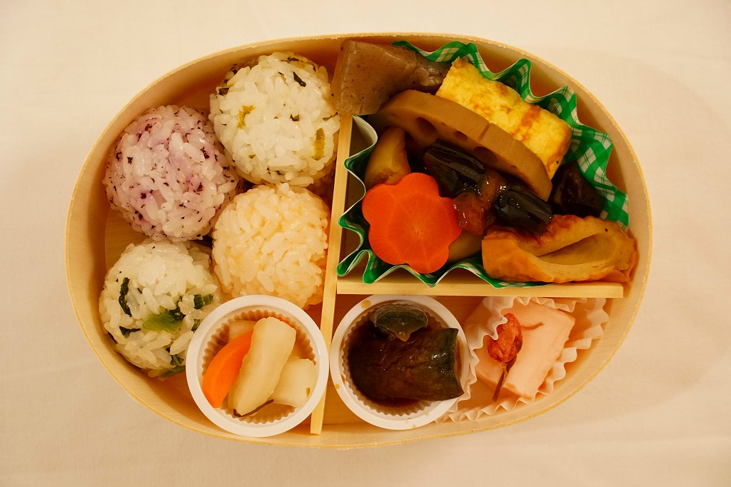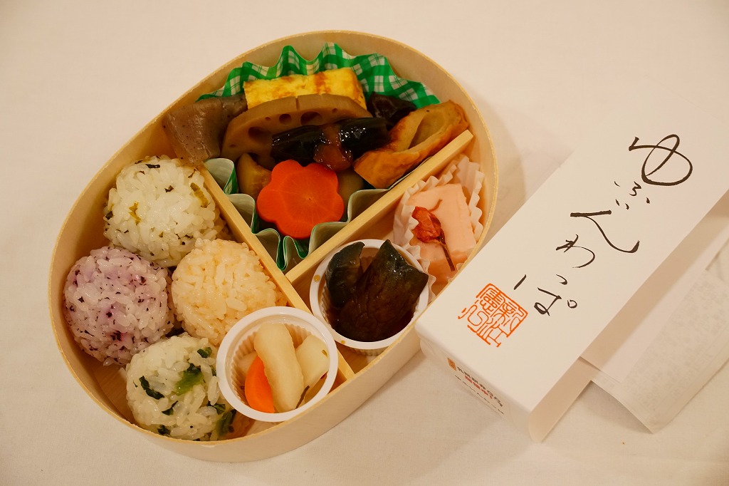 2011(平成23)年8月の発売か。楕円形の容器を巻き留める掛紙が白いのは「ゆふいんの森弁当」に似て、割りばしはそれそのものが入る。中身は高菜、明太子、しそ、わかめの球形御飯各1個に大根人参、各種の煮物と玉子焼、茄子こねりとさくらプリン。弁当というよりは、おつまみセットに見える軽食。車内限定、事前予約限定、購入には座席の指定と2日前までの予約が必要な弁当とされるが、予約なしに列車内の売店で買えることがある。駅で売られる弁当でないが、2022年のJR九州の駅弁キャンペーン「第13回九州駅弁グランプリ」にエントリー。価格は2022年時点で720円、2024年時点で1,000円。
