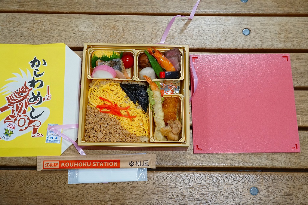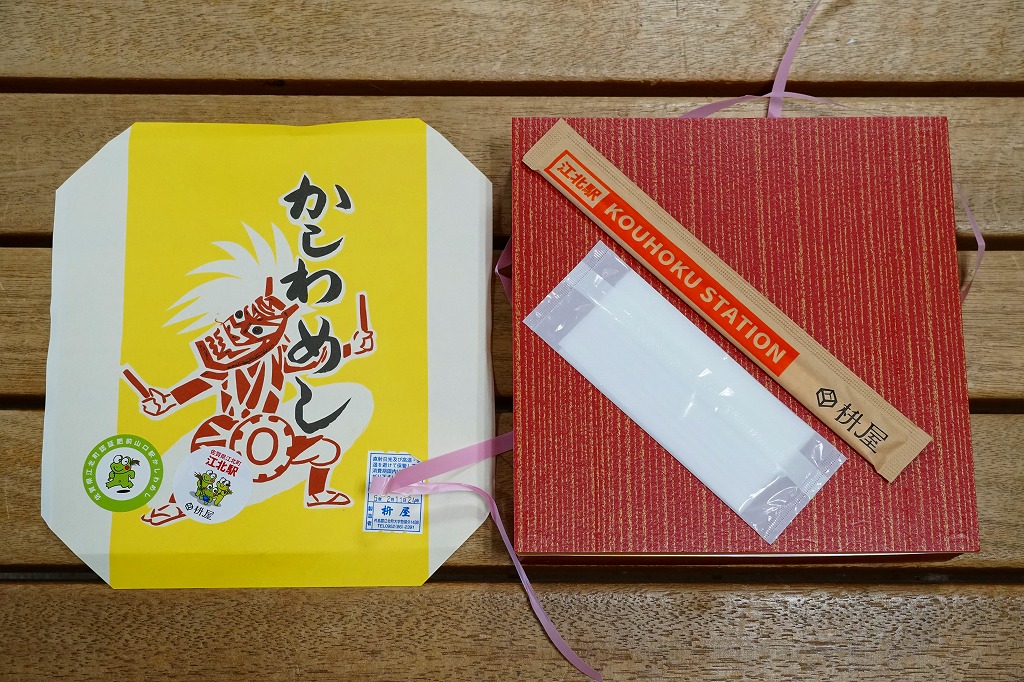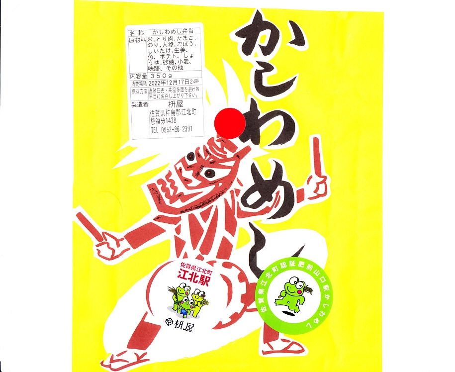 2022(令和4)年5月に、当時の肥前山口駅北口でオープンしたコンテナショップ「エキ・キタ」で発売。かつて肥前山口駅で売られた駅弁「かしわめし」を、地元の商工会と飲食店組合と町民8名を含む15名で2016年11月に発足した江北町駅弁研究会が復刻し、江北市街の料理店「枡屋」の調製により2017年6月からイベント時に販売していた弁当が、駅前の常設店舗で売られるようになった。