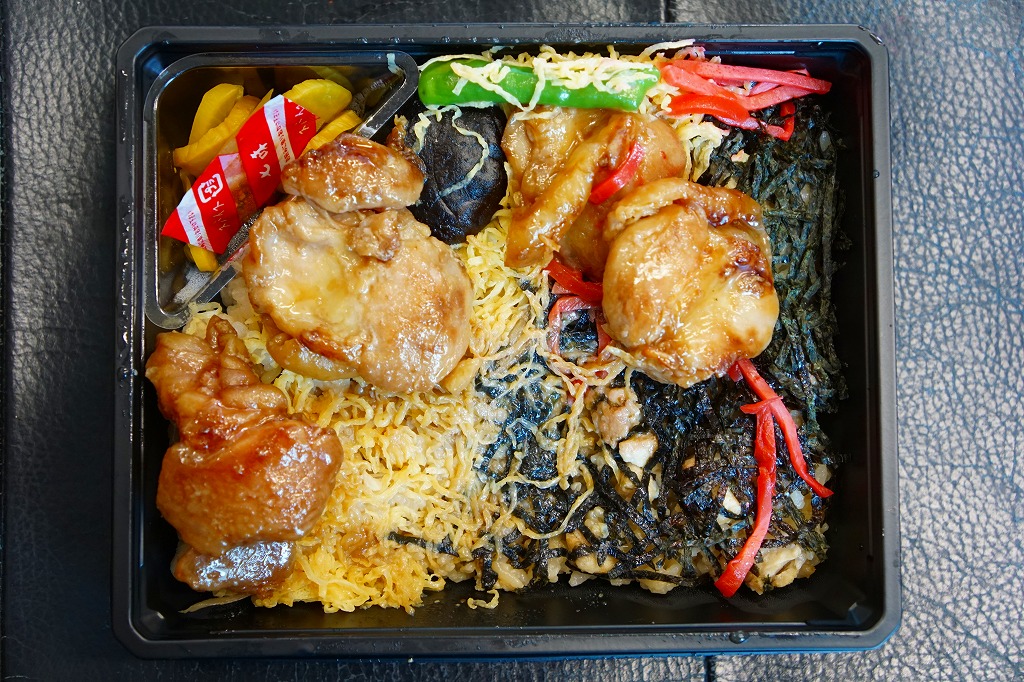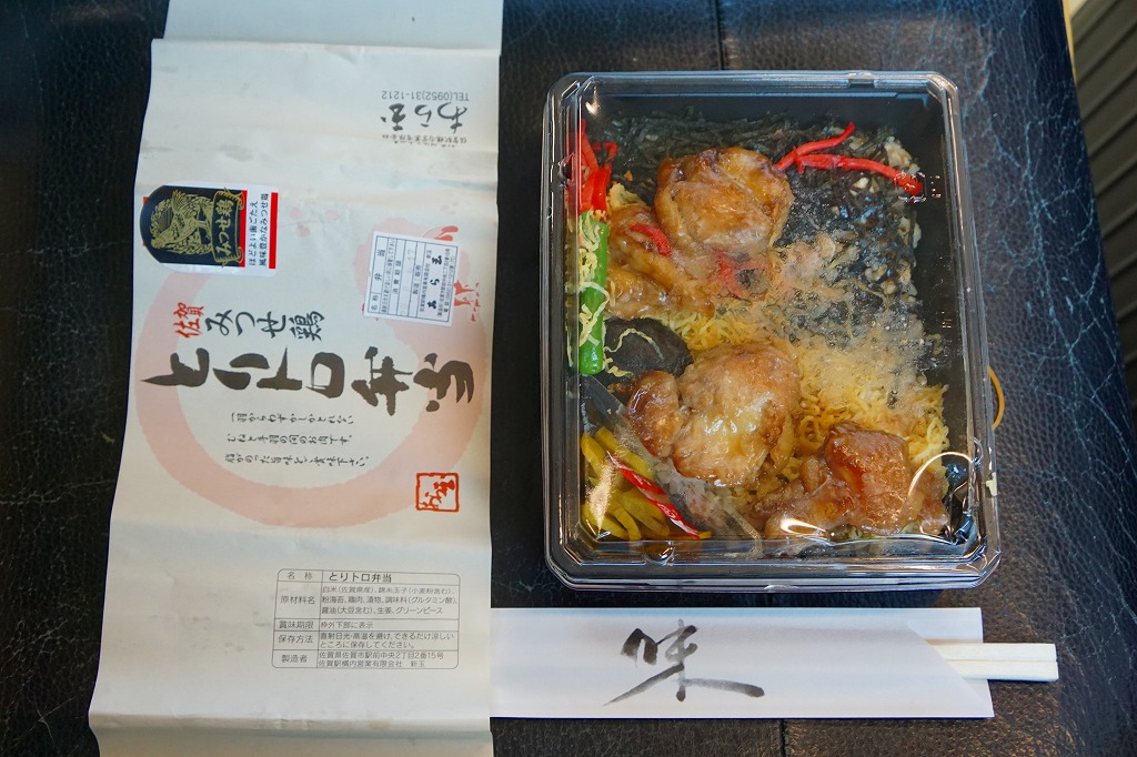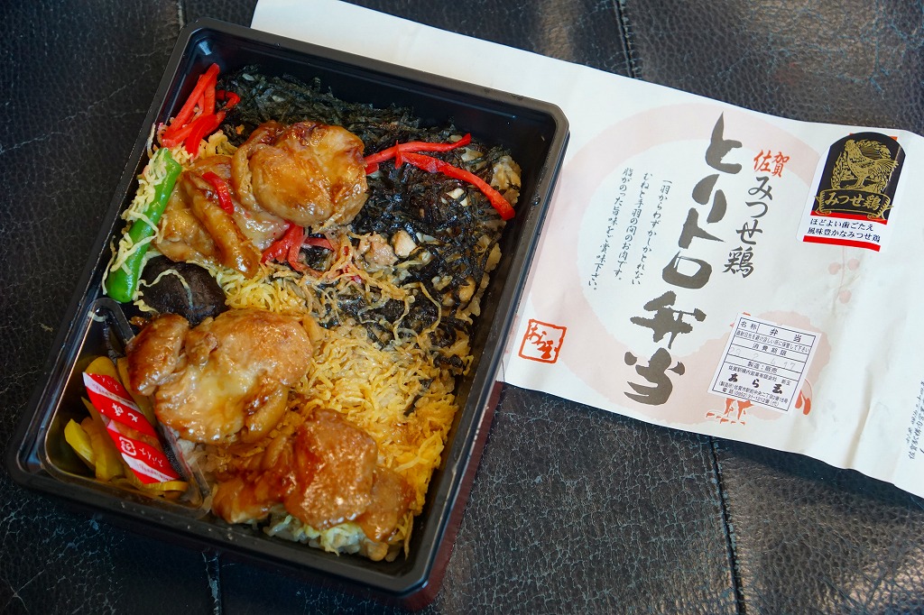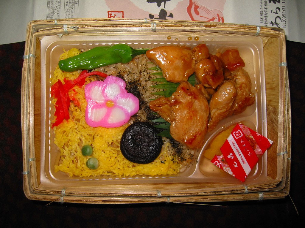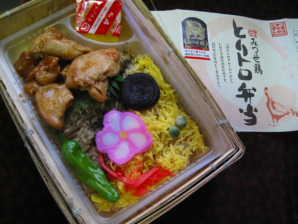 2006(平成18)年10月のJR九州の駅弁キャンペーン「第3回九州の駅弁ランキング」の開催を前に、同年8月に発売。スーパーの惣菜のようなプラ製容器に収まる中身は、茶飯の上を錦糸卵と「みつせ鶏」手羽胸肉の照焼で覆い、グリーンピース、ししとう、シイタケ、かまぼこ、紅生姜で彩り、タクアンと七味唐辛子を添えるもの。見た目も食べても脂肪分が感じられなく、肉の密度が高いのに固いわけではない独特の鶏のぶつ切りが印象的。価格は2006年の発売時で730円、2014年4月の消費税率改定で760円。2022年時点でJTB時刻表に掲載があるが、佐賀駅の店舗になく、2019年で売り止めたのかもしれない。