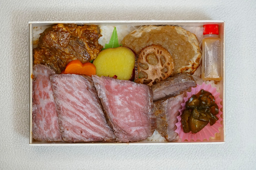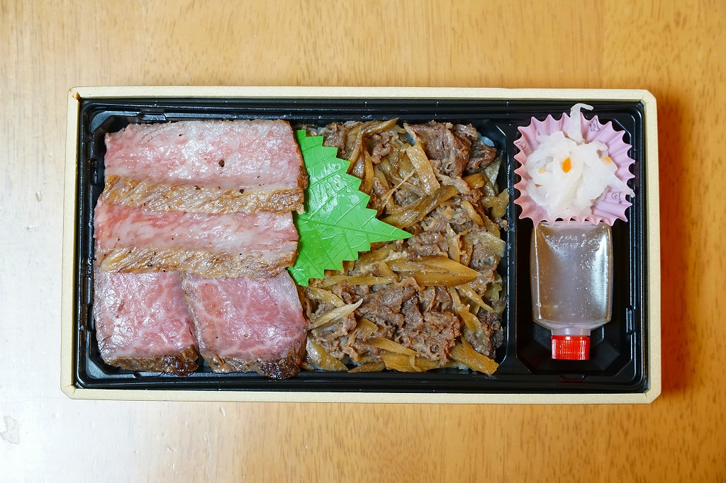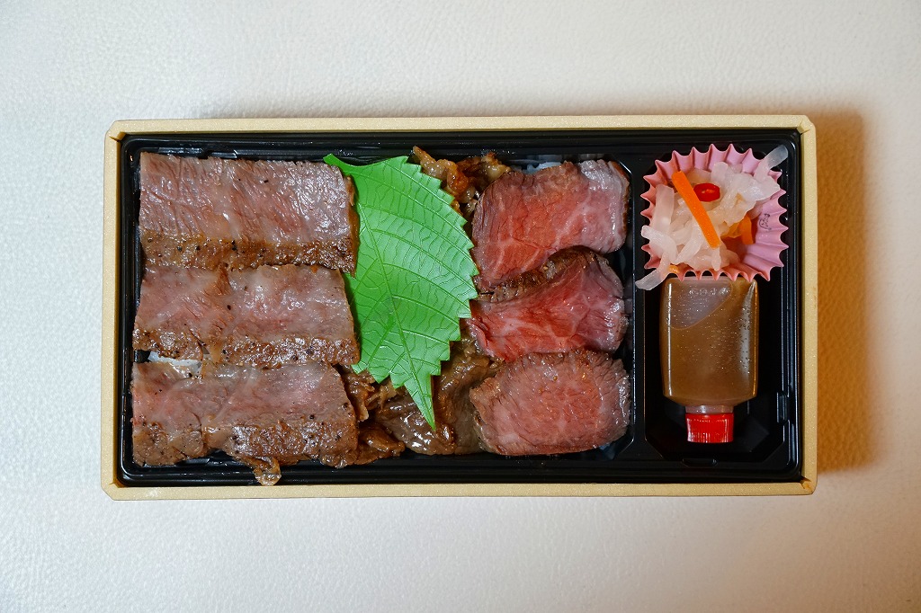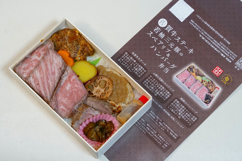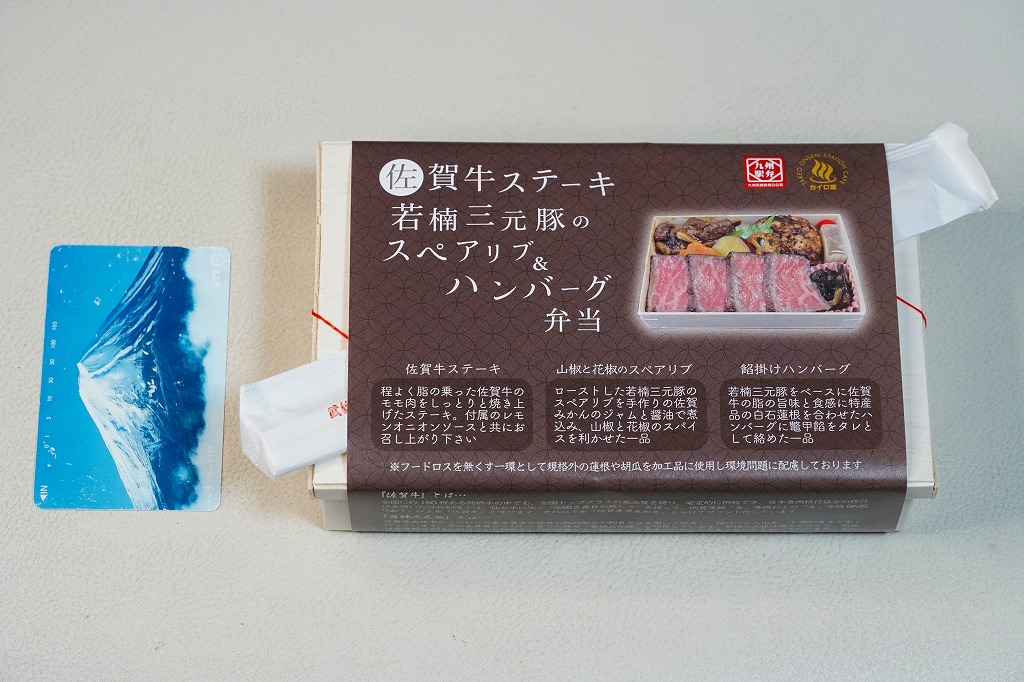 現地では「佐賀牛ステーキ&焼肉弁当」の名で注文販売される模様。価格は2014年の購入時で2,100円、2017年時点で2,160円、2020年時点で2,300円+税=2,484円。