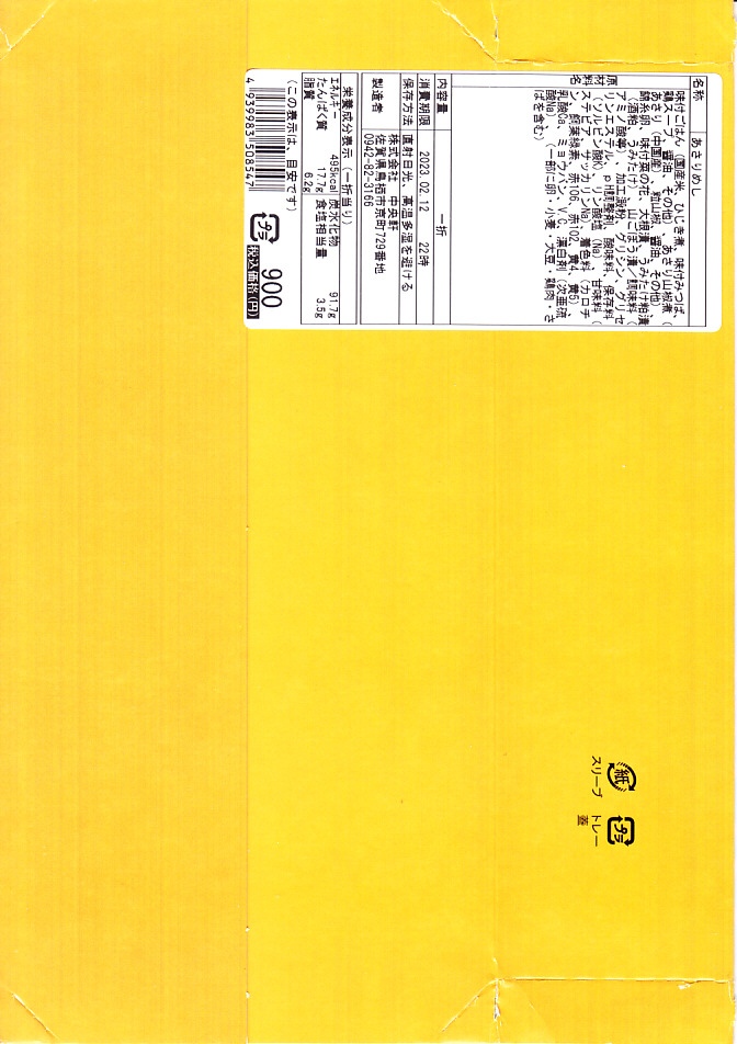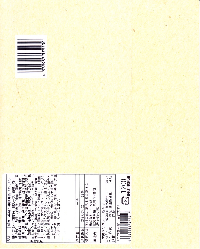 2008(平成20)年11月8日に購入した、鳥栖駅弁のスリーブ。上記の2023年のものと、容器と中身を含めて変わらない。