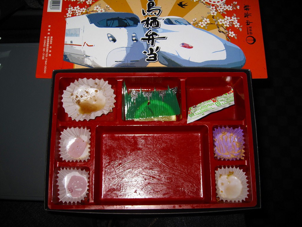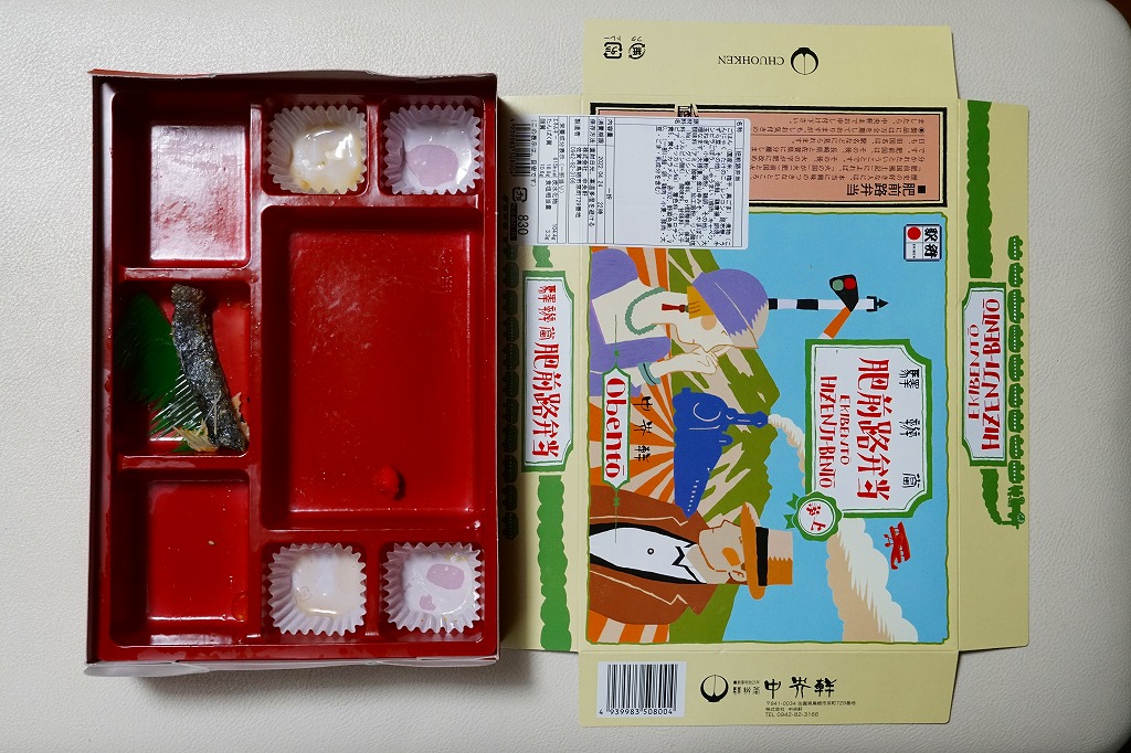 どうしてこれに購入時で1,100円もの値を付けるのか、疑問にしか思えない商品。大根漬の散乱は輸送販売では仕方がなくても、「九州の駅弁ランキング」などの見本写真では、もっと肉も高菜も入っているようなので、東京へたくさん送る際に手抜きか間違いでもあったのか。牛肉と高菜の九州風な甘い味付けも、首都圏での販売では厳しかった。2014年4月の消費税率改定で1,140円。2018年までの販売か。