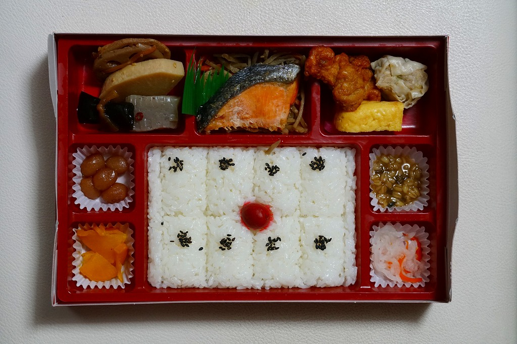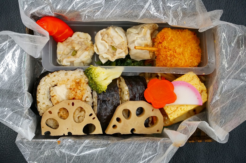 2021(令和3)年5月1日のSL列車「SL人吉」の運転開始に合わせて、鳥栖駅で発売。SLの運転日のみの販売。掛紙には鹿児島本線でなく肥薩線を走るSL列車の写真が使われる。竹皮編み容器に見える、薄い竹皮を貼り付けた紙箱に収めた中身は、チキン南蛮の太巻き、れんこん、きんぴらごぼう、玉子焼、焼さば、焼麦(しゃおまい)3個、ウインナー、串カツなど。蒸気機関車のサイドビューを、食材でなんとか表現したように見えなくもない、肉と油の味がするお弁当。