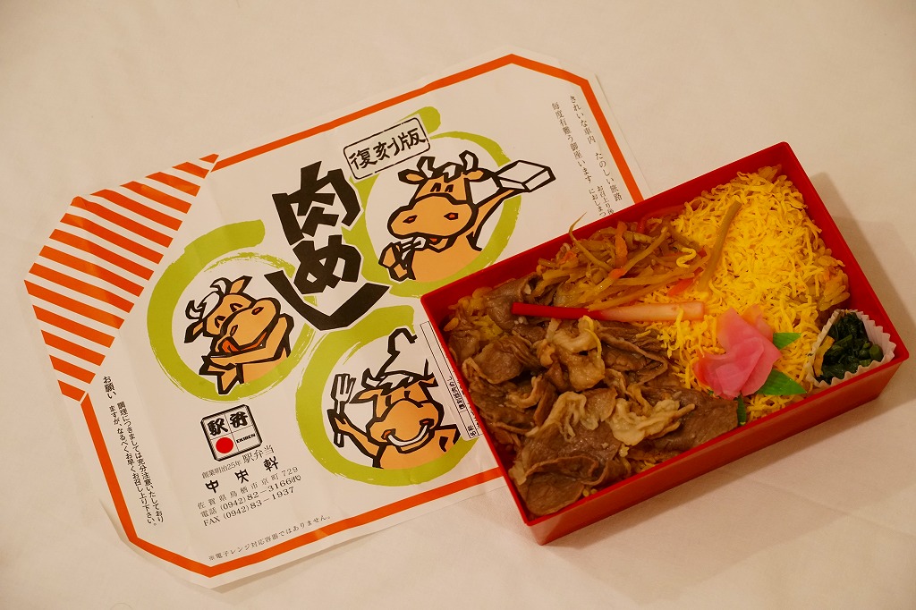 2022(令和4)年4月1日に鳥栖駅と新鳥栖駅で発売。20年ほど前までの久留米駅の名物駅弁「肉めし」が、当時の調製元を合併した鳥栖駅の駅弁屋から、復刻版として売られ始めた。この20年も久留米駅では「肉めし」が断続的に売られるが、ベースの御飯がカレー味でなく鶏味で、昭和時代とは異なるものであった。