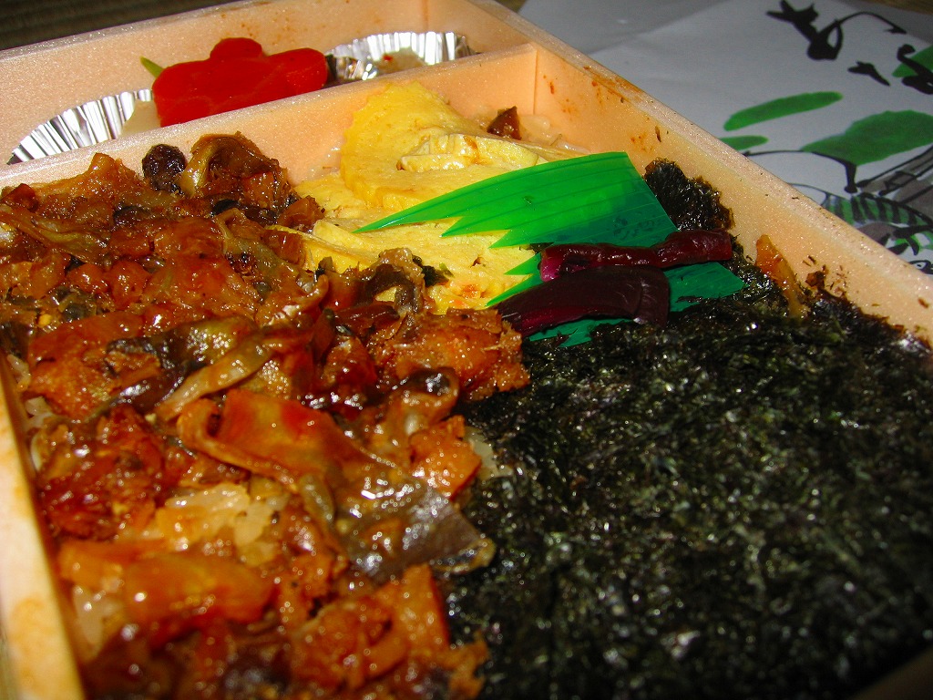 佐世保駅で「レモンステーキ弁当」に次ぎ、「あごめし」に肩を並べた存在。正方形ふたつ分の容器の、一方に白飯を詰めてが高菜古漬油炒めと鶏そぼろと錦糸卵で覆い、他方に煮物や焼き魚や玉子焼などのおかずを詰める。九州の北半分ではありふれていて名物にもならない高菜を主題にした駅弁は珍しいと思うし、高菜の弁当で千円以上もするのかと損をしそうな存在。調製元の閉店により、2014年7月限りで終売した模様。