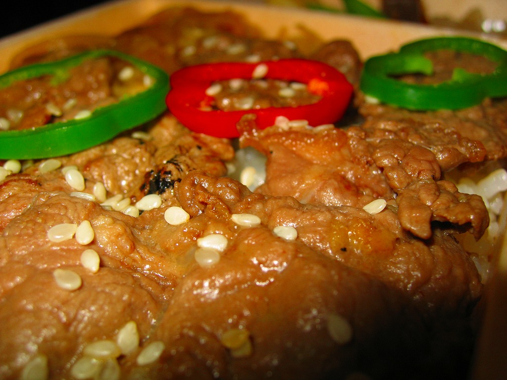 白飯を牛肉で覆い、高菜やコーンなどを付け合わせる。レモンのスライスを載せた肉そのものが、レモンの酸味をたっぷり含む。以前の駅弁屋の時代とは違う、肉をかなり硬めにした、レモンにまみれた焼肉弁当。