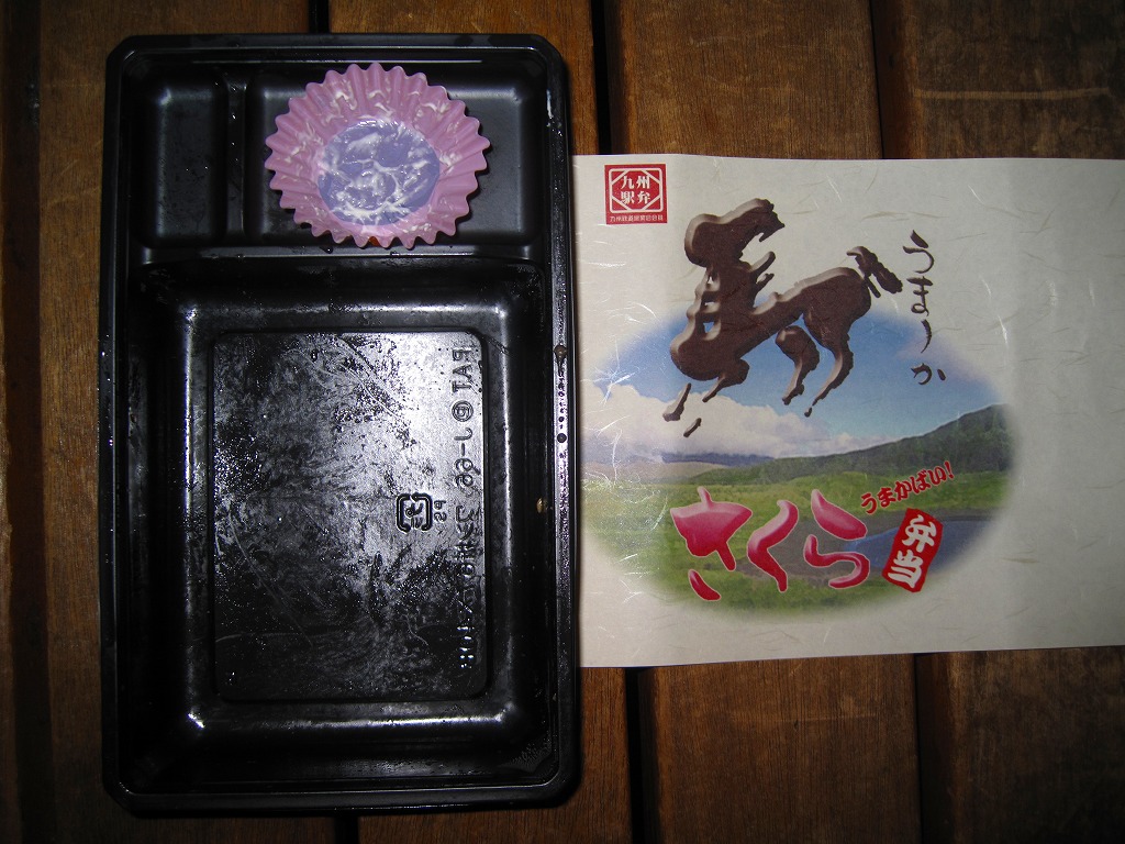 駅弁の名前と掛紙で馬肉を使った弁当であることが明らかであるから、熊本や長野や青森あたりで馬肉に親しんでいないと購入する前から抵抗を示すと思うが、この馬丼の味や見栄えについて、牛丼や豚丼とは何かが違うとは感じるものの、固かったり臭かったりするものではない。従来の駅弁屋が前面に出さなかった熊本の個性をアピールする存在として、ここにいつまでもいてほしい駅弁だと思う。2012年までの販売か。