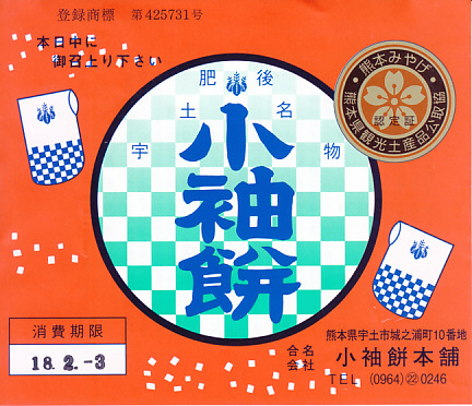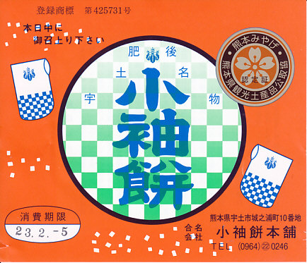 2011(平成23)年2月5日に購入した、小袖餅の掛紙など。上記の7年後と、まったく同じ。
