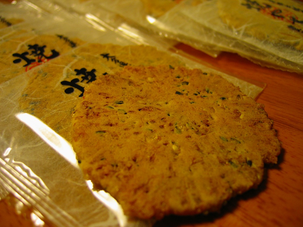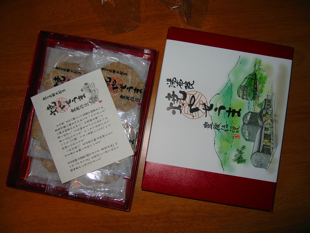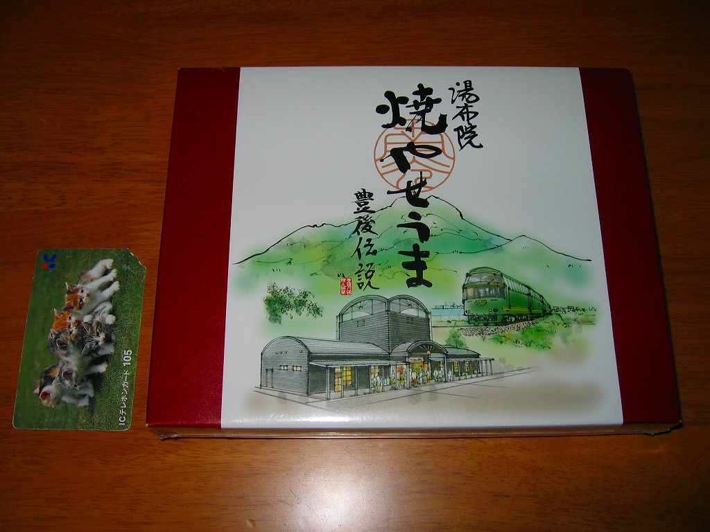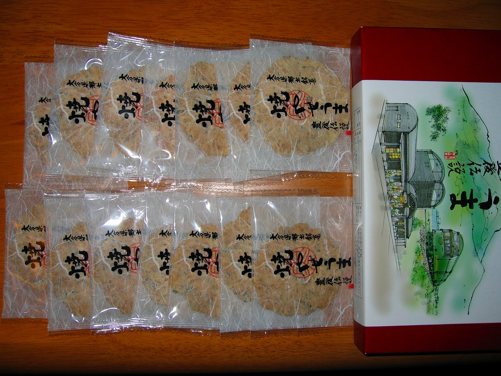 これは駅弁でなく、鉄道銘菓とも言い難いが、大分の菓子に鉄道の駅と列車を組み合わせており、駅売りが考えられるので収蔵。薄焼きの黒ごま小麦粉せんべいが14枚、個別包装で入っている。2008年に姫路へ多くの観光客を集めた第25回全国菓子大博覧会で、名誉総裁賞を獲得したそうな。あまり知られていない大分の郷土料理で、小麦粉を使ったおやつ「やせうま」を焼いたものだろうか。