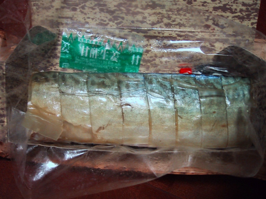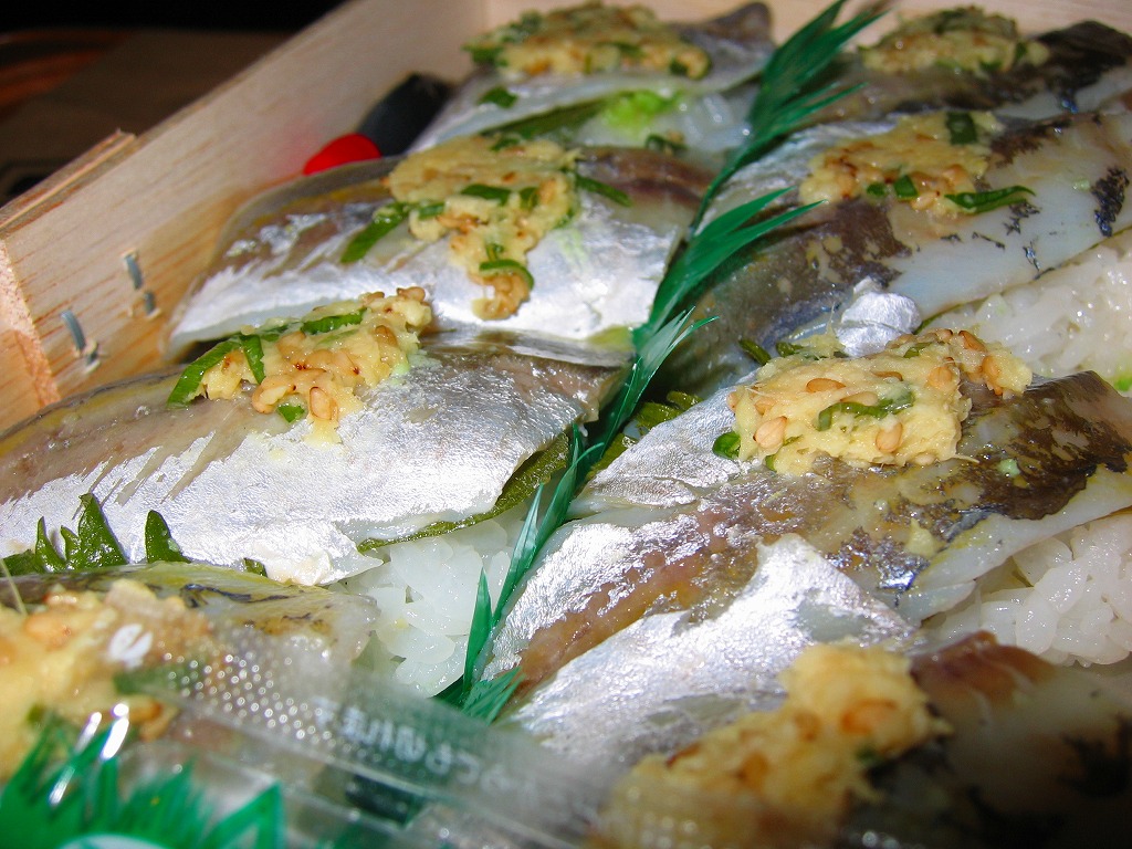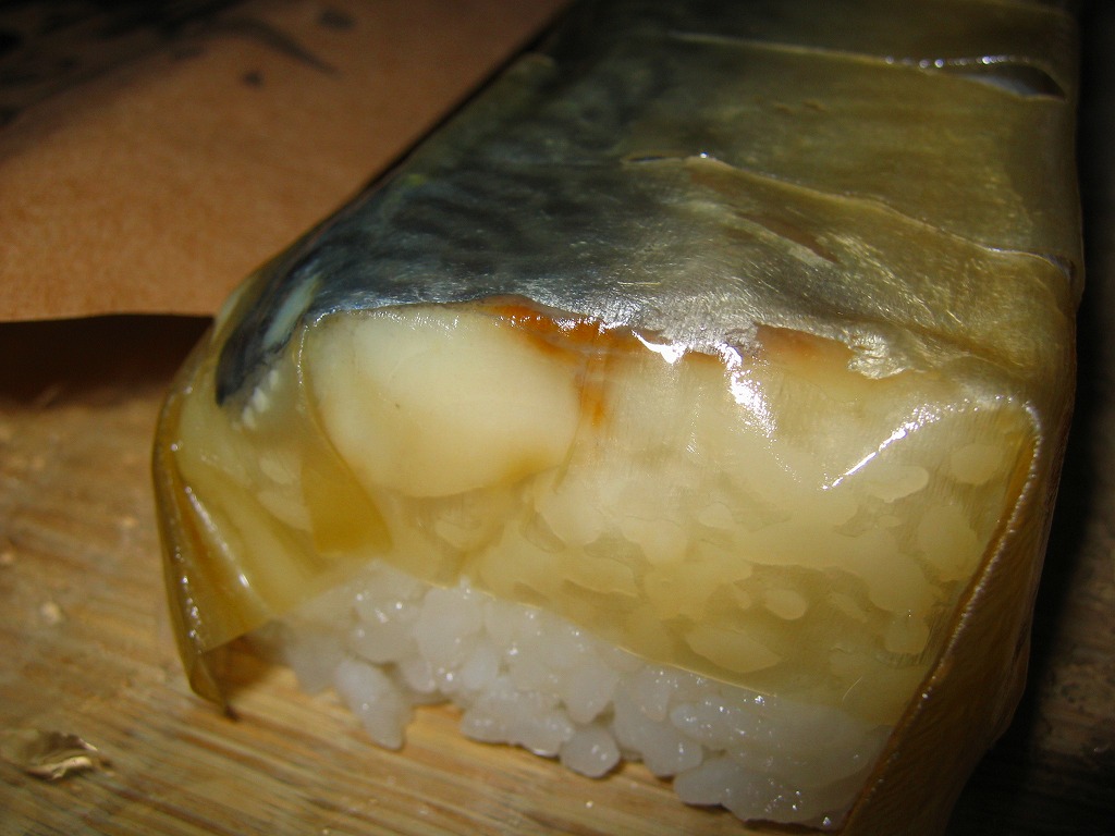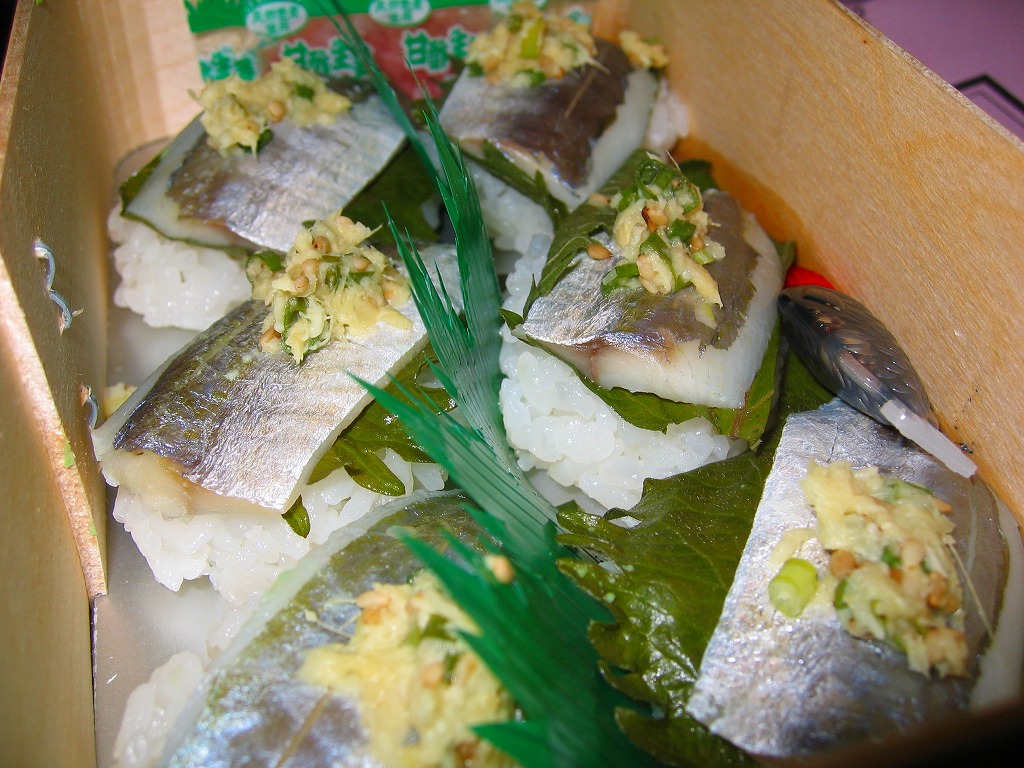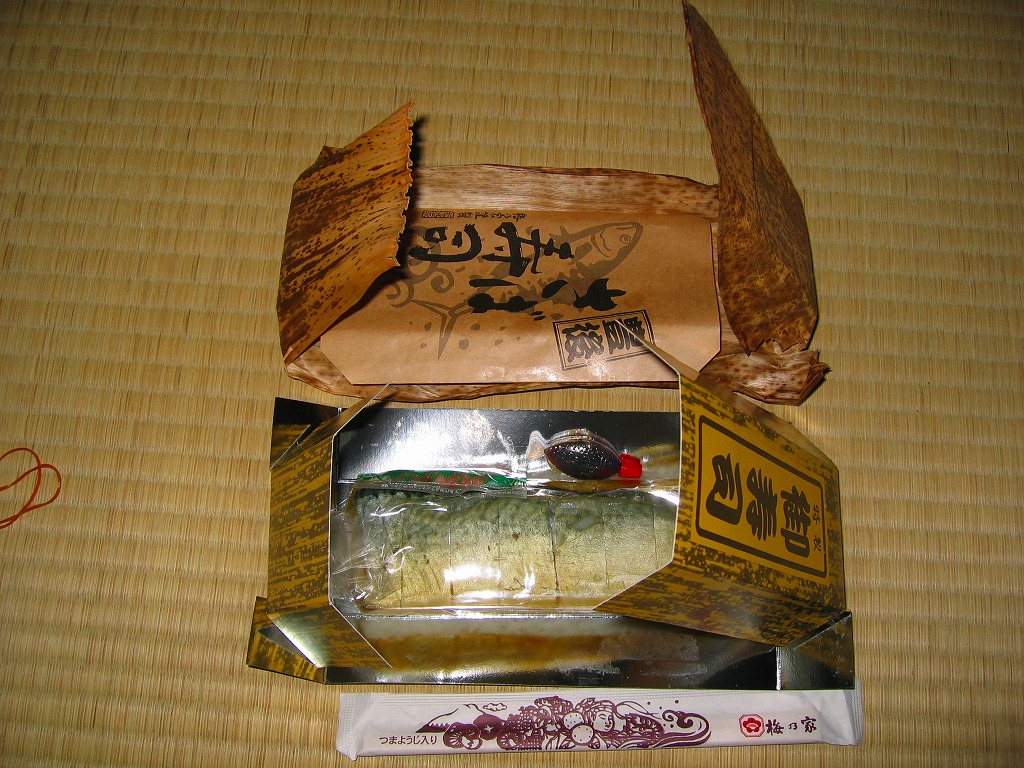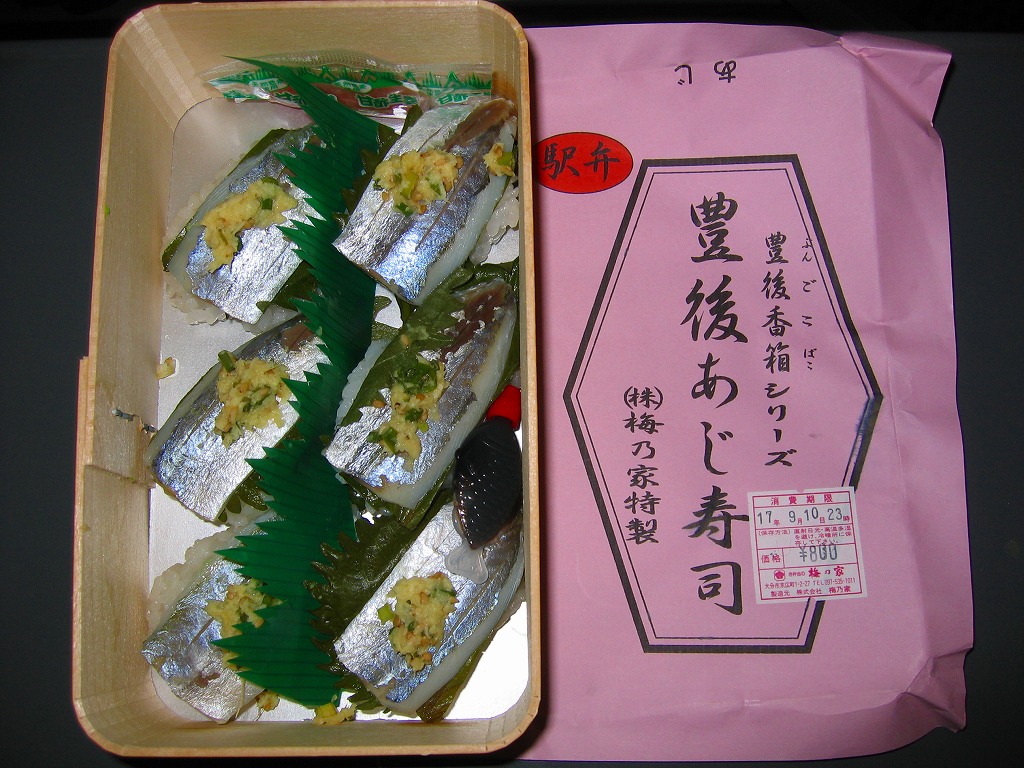 2000年頃に発売。駅弁では米子や敦賀や高山で見られる棒寿司を、大分近海の鯖を使って作ったもの。小さな割にいい値段がするが、脂の乗り、ぷりっぷりの食感、酢飯に対する鯖の分量、いずれも半端ではなく、駅弁を超えて名産品か土産物と見たい逸品。その証拠に、駅弁としては珍しい要冷蔵の商品である。