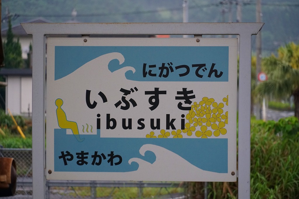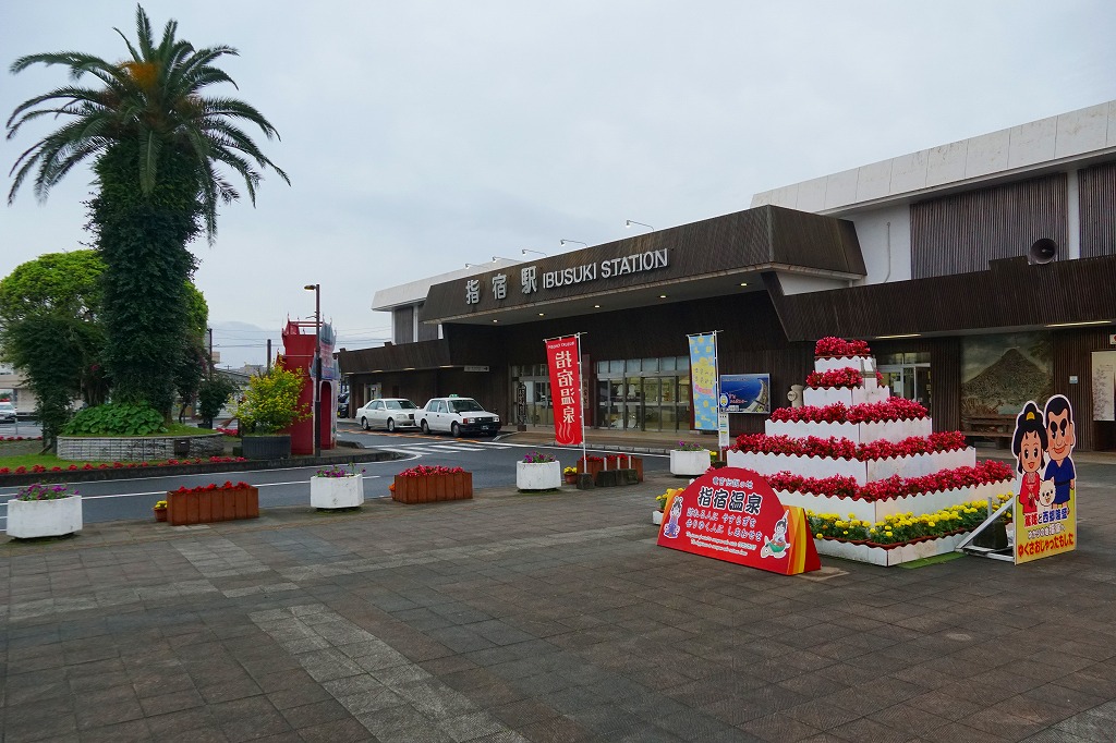 鹿児島中央駅からJR指宿枕崎線の列車で約1時間。指宿市は鹿児島県の薩摩半島の南東端に位置する、人口約4万人の温泉地。海岸の高温な温泉や蒸気が江戸時代から利用されるようになり、昭和時代中期には大規模宿泊施設が建ち並び、東洋のハワイと言われた。駅弁は昭和40年代頃に当時の西鹿児島駅の駅弁の一部が売られたほか、下記のとおり2004年度に要予約の駅弁が売られた。1934(昭和9)年12月19日開業、鹿児島県指宿市湊1丁目。
