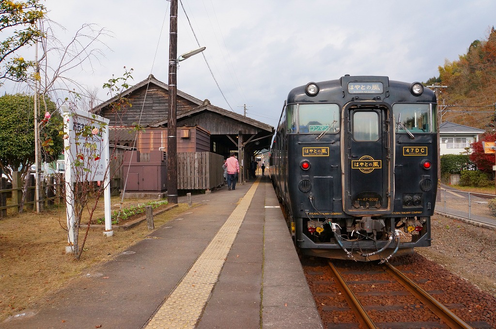 鹿児島中央駅から特急列車「はやとの風」で1時間強。大隅横川駅は、1889年から2005年まで単独で村制や町制を敷いた横川町の中心駅で、駅の開業当時からの九州最古の木造駅舎を持つ。駅弁はないが、下記のように駅で地元の弁当が買えた。1903(明治36)年1月15日開業、鹿児島県霧島市横川町中ノ。