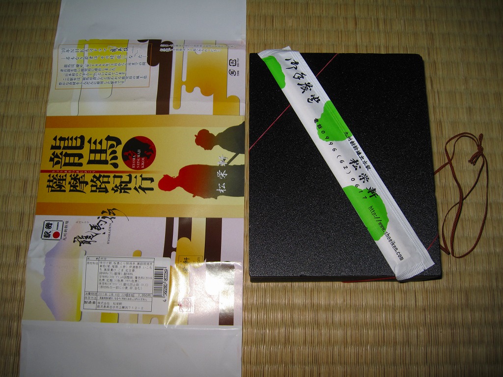 添付の紙片はお品書きではなく、郷中教育十八学舎の一覧表。掛紙左下に郷中(ごじゅう)教育の解説が記される。江戸時代薩摩藩の教育体制から輩出された人材が、明治維新の過程で大きな役割を果たしたが、その後の薩摩あるいは薩長土肥が特段の発展や求心を見せずに一地方の枠に留まるのは、どうしたことか。2007年頃までに売り止めた模様。