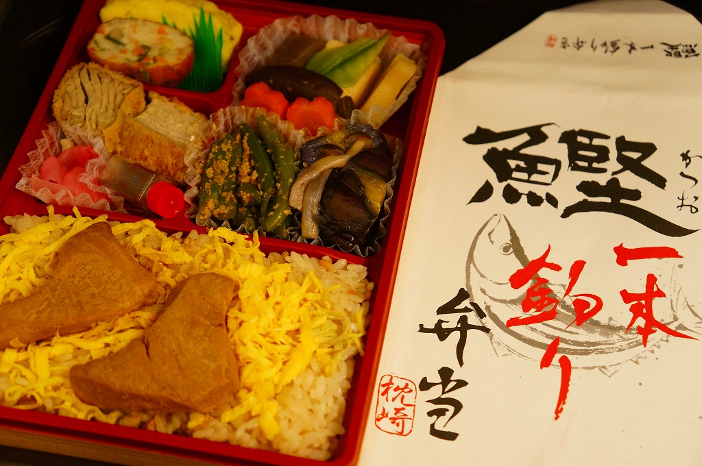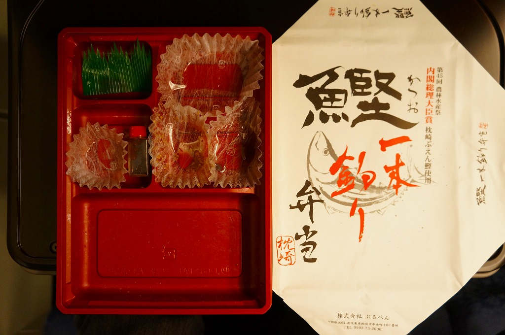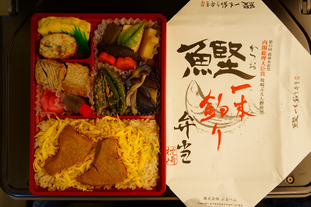 内閣総理大臣賞を受賞して、この駅弁にも使われた「枕崎ぶえん鰹」とは、枕崎市漁業協同組合が開発した、一本釣りしたカツオを船上にて活き〆(血抜き)したあと急速冷凍し、弾力性のあるモチモチとした新食感の歯ごたえ生臭さのないさわやかな味と鮮やかな赤みを実現したブランド魚。そんなことを言わなくても枕崎は漁業で有名であると思うが、全国の大小の漁港と同じく、魚価の低迷や燃料費の高騰に悩んでいることが、この魚を紹介する公式サイトでの記述でうかがえる。