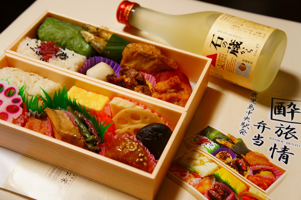 九州新幹線(鹿児島ルート)の全線開業1周年を記念して、2012(平成24)年3月1日に発売。中身は掛紙の写真のとおり、半分が芋焼酎「石の蔵から」、半分の上下段で俵飯3種、キビナゴ甘酢あんかけ、黒豚炭火焼、さつま揚げ、鶏唐揚、芋レモン煮、玉子焼、ダイコンなます、マグロ角煮、ミートボール、根菜の煮物、辛子明太子など。