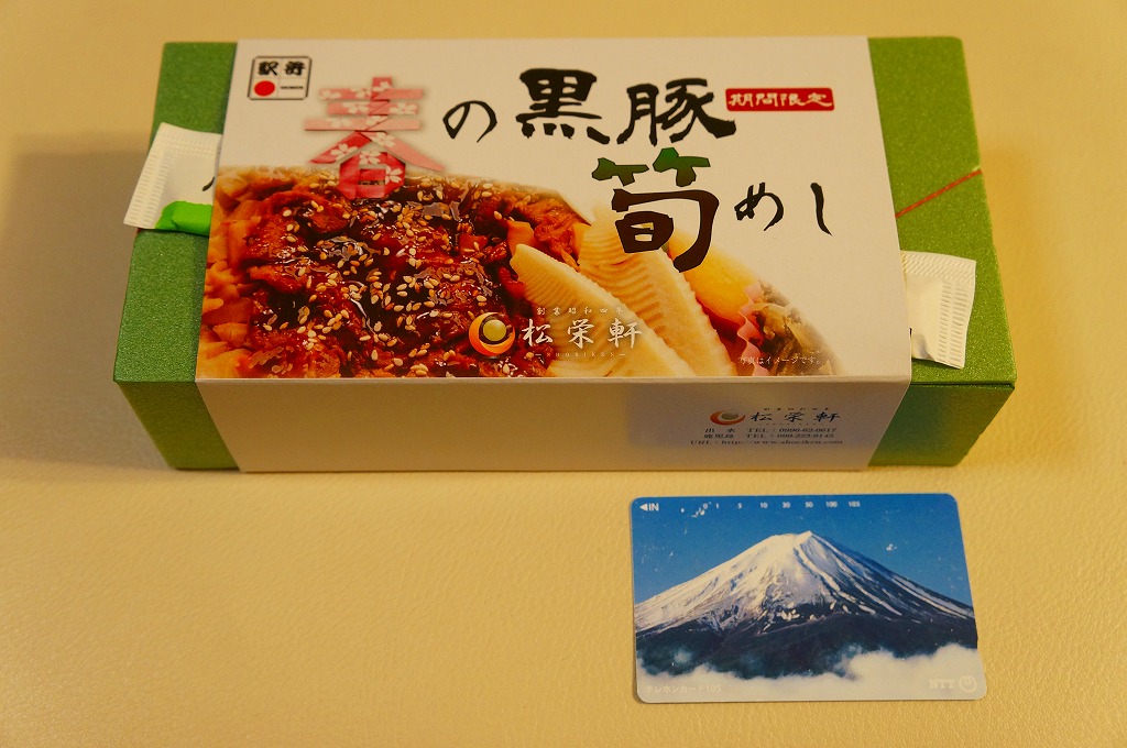 確かに肉たっぷり。でも肉しかなく、食べ飽きそうな感じ。狭い催事場での実演販売に向いていたと思う。今回の駅弁大会を放送したテレビ番組で、この駅弁の開発の過程が放送された。百貨店バイヤーがダメ出しした試作品には錦糸卵が入っており、そのほうが彩りを出して食感を和らげて、良かったかもしれない。後に肉へごぼう煮を混ぜたり、錦糸卵で仕切って付合せも加えた「春の」バージョンを出したりしている。2019年までの販売か。