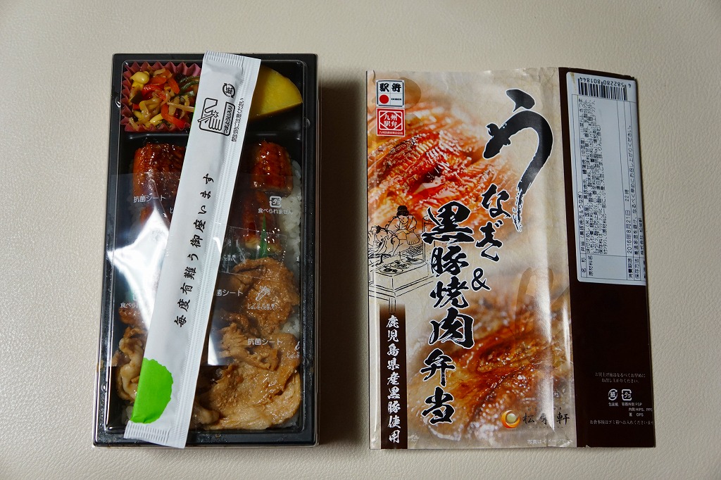 これは失敗。ウナギはグミの食感で、豚肉はなぜか酸っぱい。もしこれらのメインの味が無難でも、鹿児島やそもそも日本でないナムルや、この調製元の駅弁でよく使われるレモン味のサツマイモが、この内容にミスマッチ。出水や鹿児島の現地では経験のない粗製濫造品に、がっかりした。2018年までの販売か。
