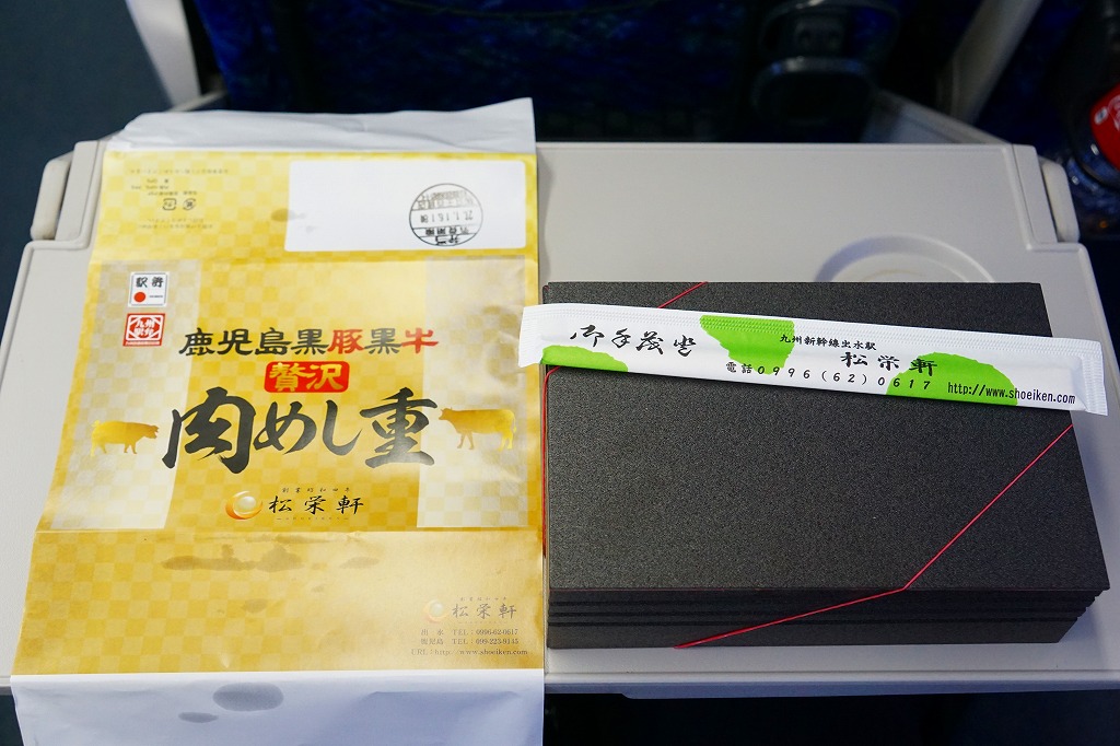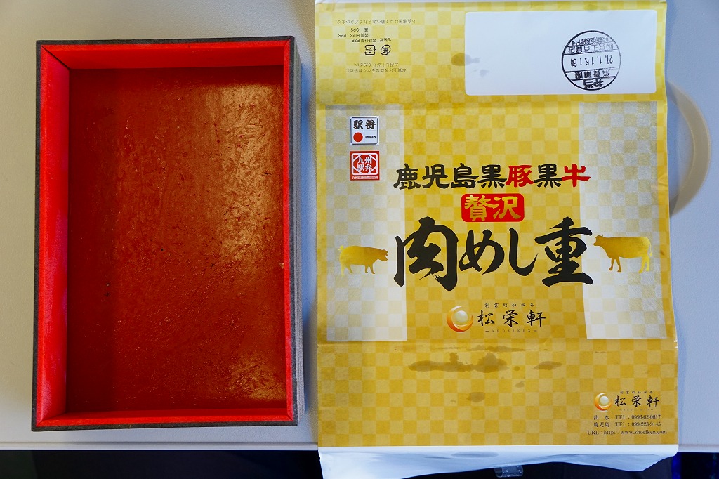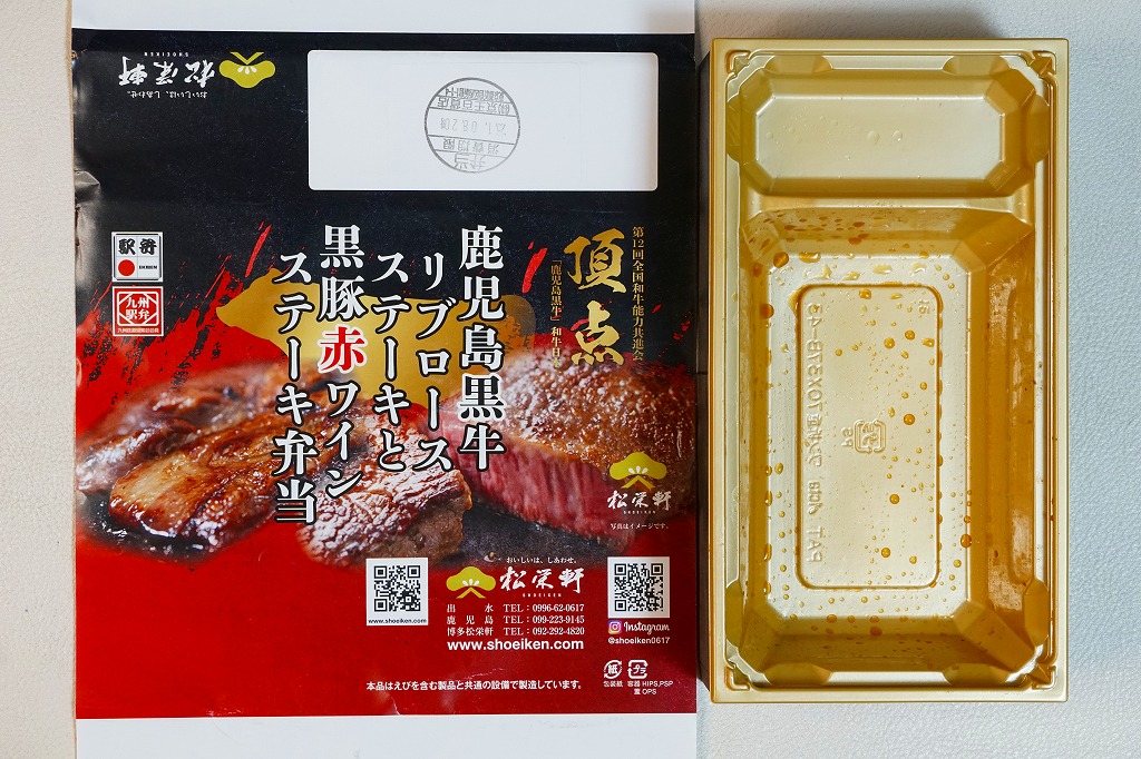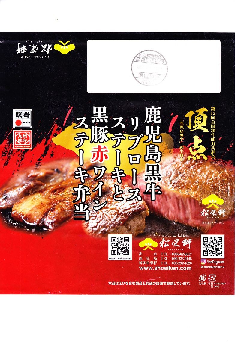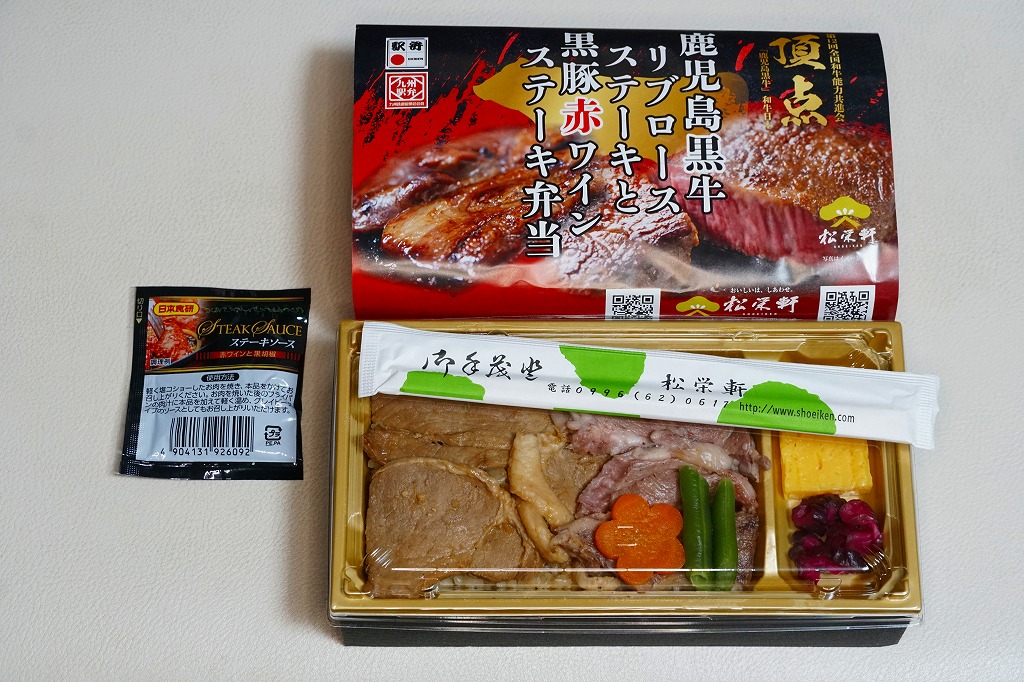 2023(令和5)年1月の京王百貨店の駅弁大会で、出水駅の駅弁として実演販売。同月の阪神百貨店の駅弁大会でも販売。長方形のプラ容器に茶飯を詰め、おそらく鹿児島県黒牛リブロースステーキと黒豚赤ワインステーキで覆い、ニンジンとインゲンで彩り、玉子焼と柴漬けを添える。さすがに味も見た目も、掛紙写真のイメージとは違うが、牛も豚も肉の赤身がしっかりしていて、ちょっと高そうな肉弁当には感じた。この両駅弁大会でのみ販売された模様。