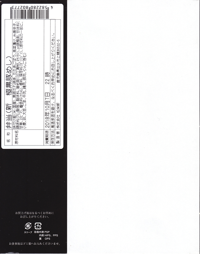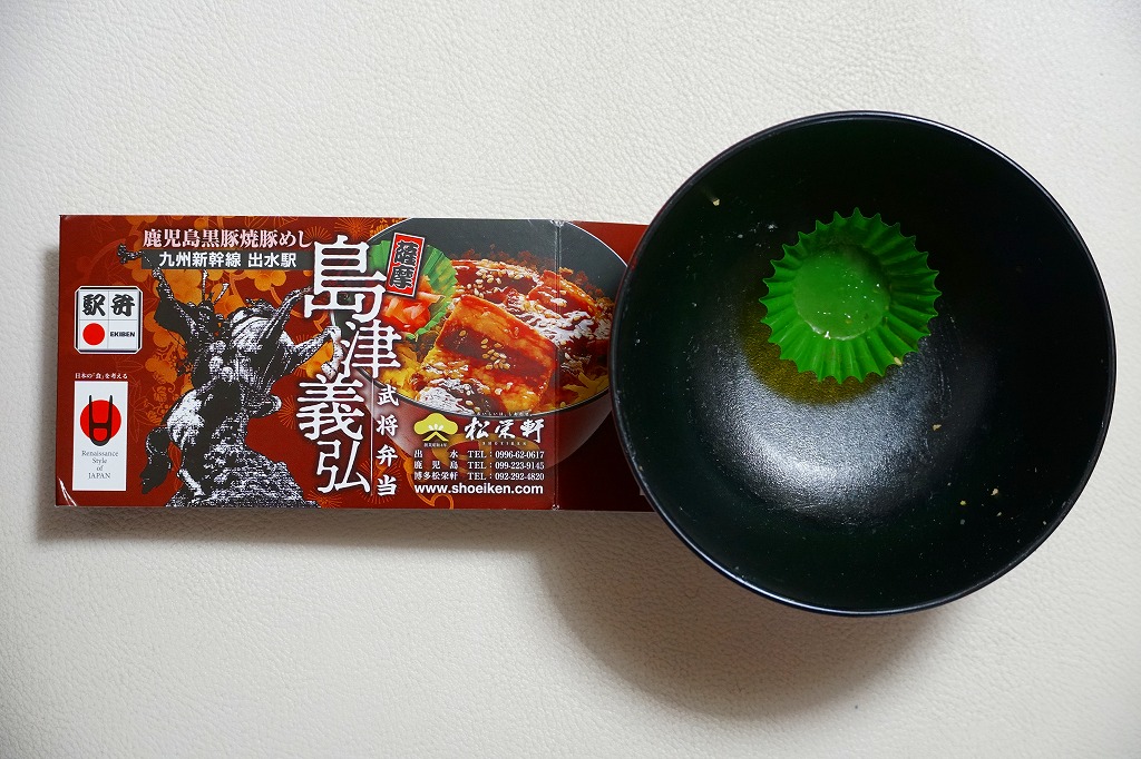 この内容へのリニューアルは、2015年の出来事か、今回の東京駅に限ったことか。こんな豚肉駅弁は東京駅にないので、選ばれやすいと思う。ただし、掛紙の強い絵柄も含め、上品ではない見た目ときつい味は、南九州の旅でこそ味わえるのではないかとは思った。その翌年に同じ名前で中身が異なる駅弁が出現したことから、これは売られなくなったと思われる。
