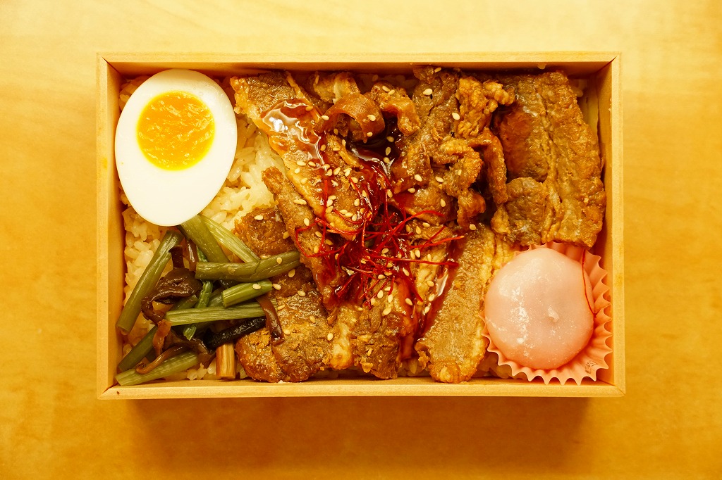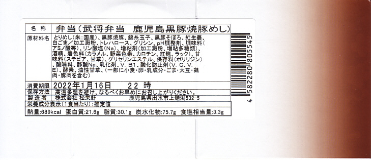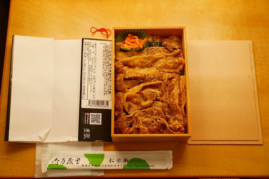 2022(令和4)年1月の京王百貨店の駅弁大会で、出水駅の駅弁として実演販売。同月の阪神百貨店の駅弁大会でも販売。経木のわっぱ容器と表現する長円形の容器に収めた黒いプラ容器に、茶飯を詰め、豚バラ肉と焼き鳥のような豚焼肉で覆い、煮玉子、ささがきごぼう、さつまいも、紅生姜を添える。これが出水駅や鹿児島中央駅で買えるかは分からないが、付合せを含めてこのような中身の駅弁は出水駅や鹿児島中央駅で十数年に渡り新作が次々に出るものなので、初めて食べた感じがしない、想定内の濃ゆい味付け。この両大会でのみの販売か。