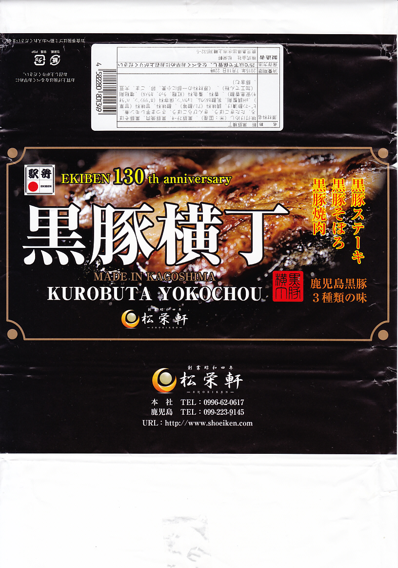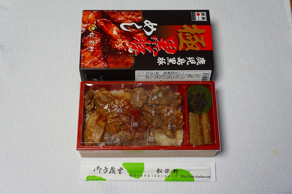 JR九州の観光キャンペーン「鹿児島スイッチ」とのタイアップ商品として、2007(平成19)年10月に発売。ただし、購入したものの中身は、2種の御飯に多種のおかずを詰めた当時の内容とはまるで異なる。白御飯の上にささがきごぼうを敷き、掛紙に書かれるとおり黒豚のステーキ、そぼろ、焼肉で覆い、さつまいもレモン煮とごぼうを添える。