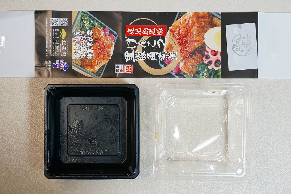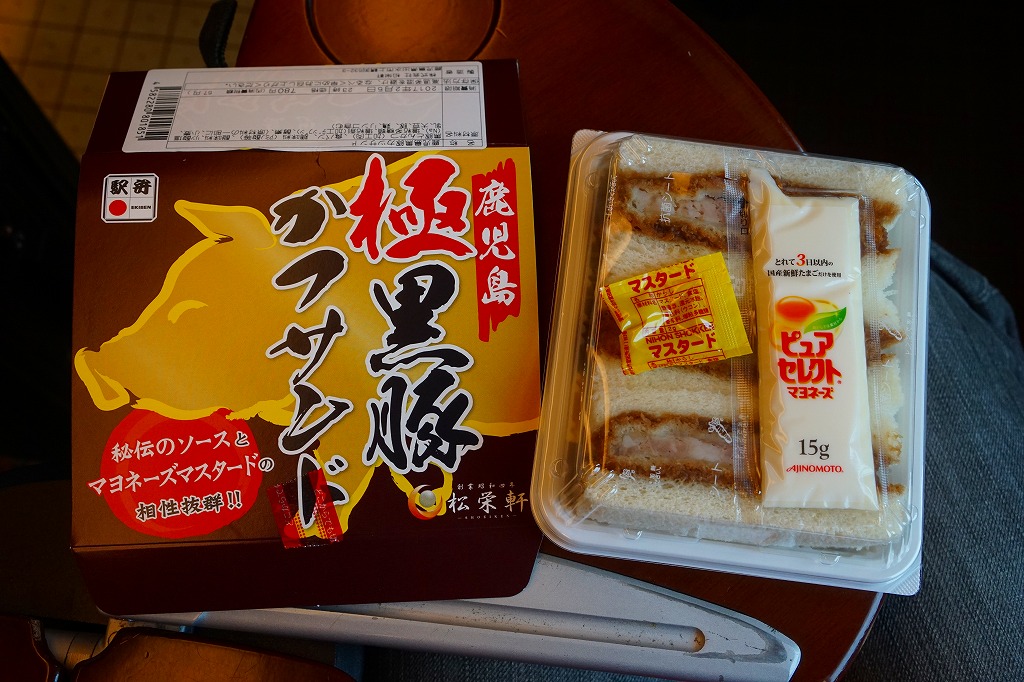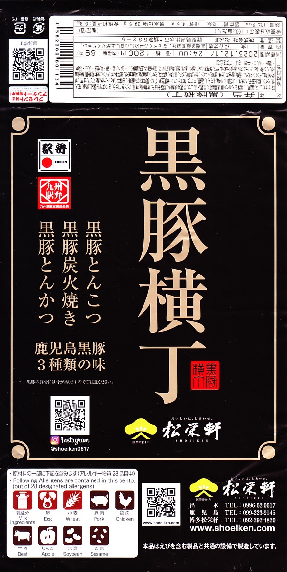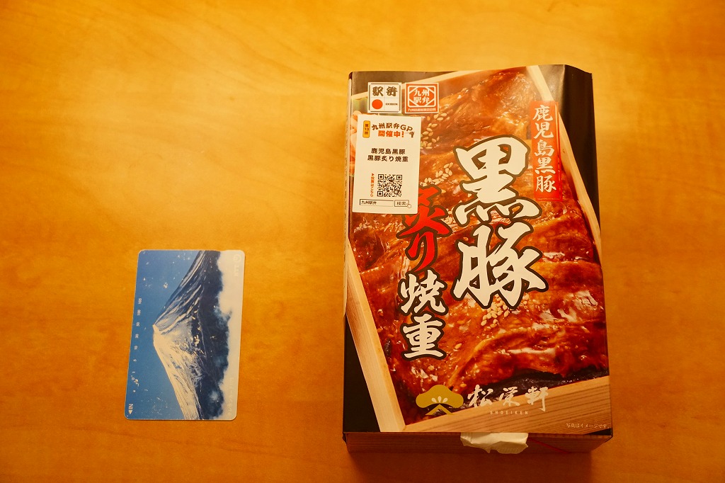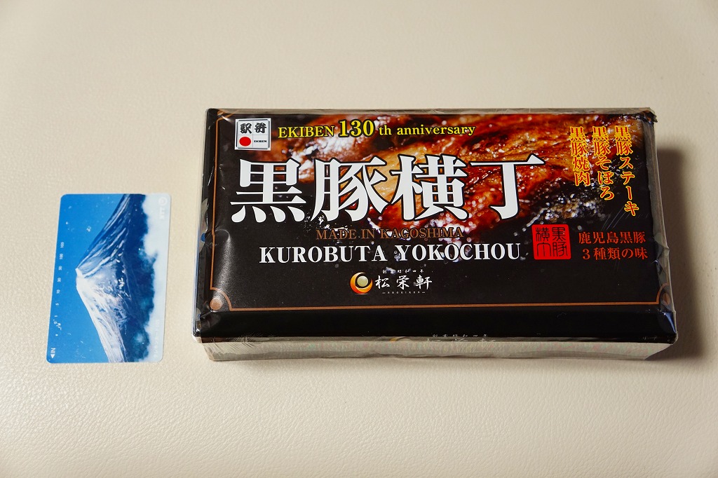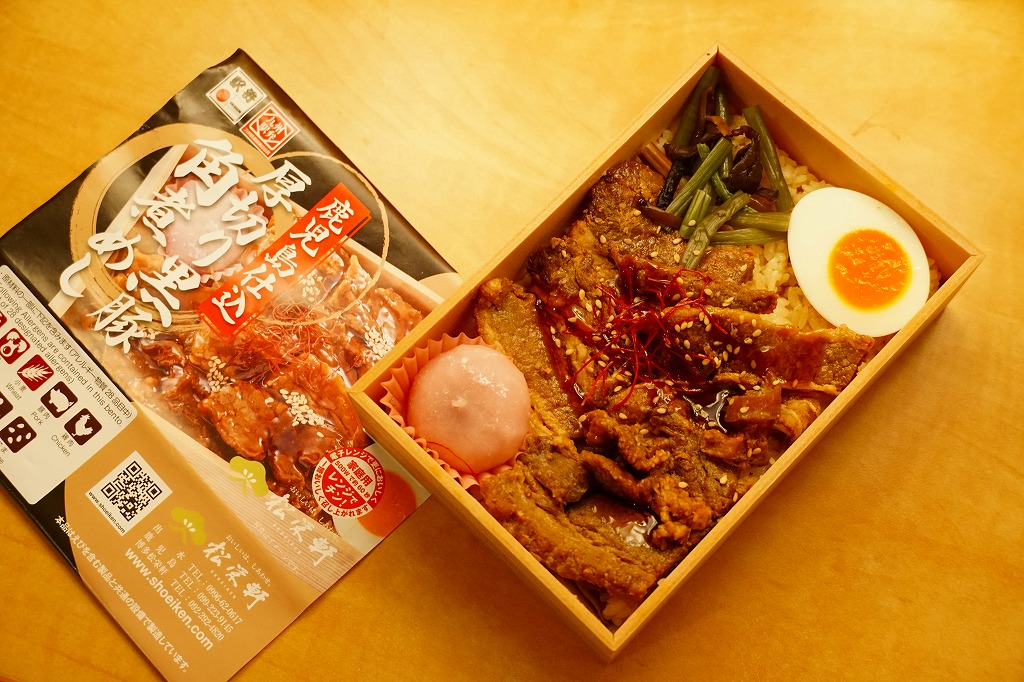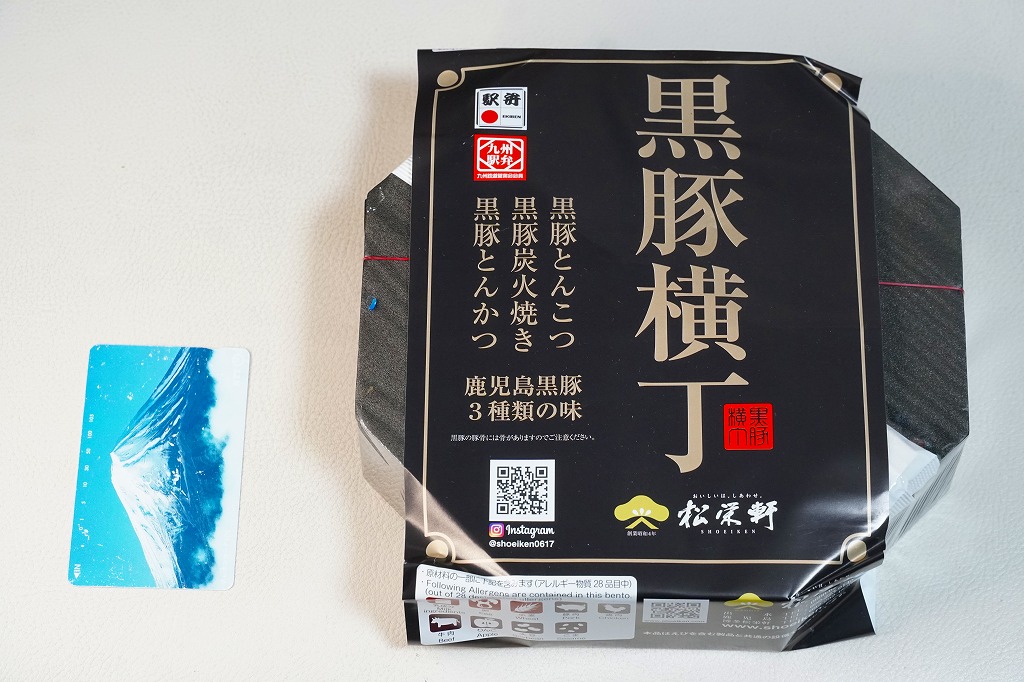 真っ黒な正八角形の容器を4区画に仕切り、日の丸御飯、茶飯を豚そぼろと錦糸卵で覆うもの、黒豚のとんこつと炭火焼とトンカツ、煮物や酢の物やサツマイモなどを詰める。豚の料理や駅弁は各地に出ても、とんこつは鹿児島特有なので、もっとご当地駅弁に入れてほしいもの。値段は2016年時点で1,080円、2019年10月から1,150円、2023年時点で1,200円。2024年までの販売か。