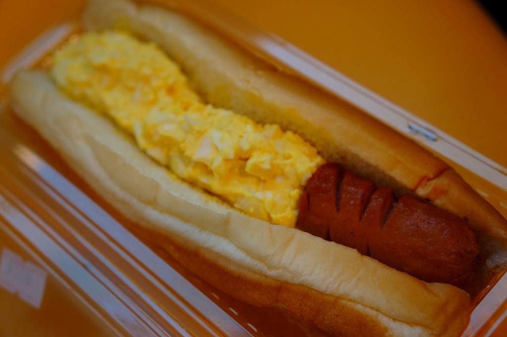 これは駅弁ではなく、伊江島と沖縄本島の本部を結ぶ村営フェリーの売店で販売されていた惣菜のひとつで、コッペパンにゆで卵のペーストと焼ウインナーを挟んだもの。