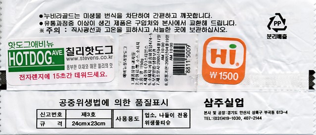 2005年の訪問時に、ソウル市にある龍山駅のコンビニキオスクで見付けたホットドッグ。他にキンパブとサンドイッチもあったが、前日にソウル駅で買ったものと同じだった。長径十数センチのパンにソーセージ1本とピクルス約4切れを挟み、タマネギみじん切りをまぶしチリソースをかけた、つまりホットドッグを同型の透明プラ容器に入れ、商品シールと食品表示シールとキオスクの値札を貼ったもの。名前は「チリホットドッグ」の音読みか。しかし分量や味は日本のコンビニ商品に劣る感じ。