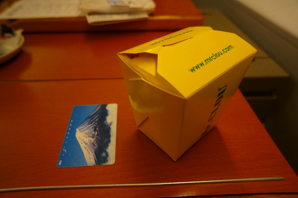 中身は細巻がきゅうり、サーモン、カニカマ?、ツナ?で4種12個、握りがエビ、サーモン、アナゴ?、白身の何かの魚で4種5貫。魚型の醤油にワサビとガリも付き、中身の見た目は日本そのもの。米がペースト状で残念な感じだったが、それ以外は風味も雰囲気も日本の惣菜と何ら変わらない。あとちょっとで和風駅弁と呼べそうな感じだ。