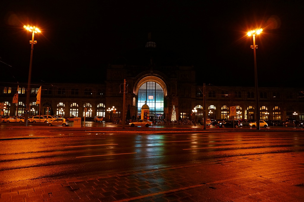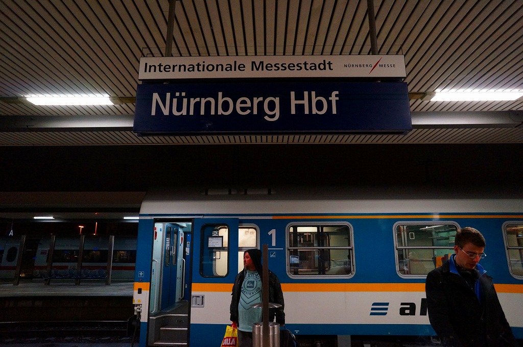 ドイツで最初の鉄道は1835年12月7日、バイエルン州のニュルンベルクとその近郊のフュルトとの間、4.6マイル(約7km)の区間で開業した。1844年には州立鉄道がこの中央駅を開設、19世紀のうちに各方面への幹線鉄道が整備されたという。第二次大戦の空爆で旧市街ごと壊滅したが、後に歴史的な面影が感じられる現在の姿に再建されている。駅舎内は十字の吹き抜けに2層の店舗が面する中規模なショッピングセンターになっており、クリスマス休暇で大きなリュックやトランクを持つ旅客で賑わっていた。