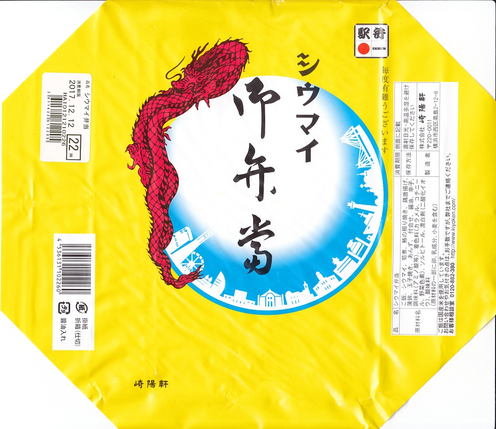 駅弁の名前は「シウマイ弁当」でもOK。1954(昭和29)年4月1日に100円で発売。駅弁の枠を超えて横浜を代表する、とても有名なお弁当。市販の時刻表に掲載される横浜駅や新横浜駅や保土ヶ谷駅など横浜や東京の各駅に加えて、私鉄や地下鉄の駅、羽田空港、横浜市内や東京都内やその近隣の多くの百貨店などでも購入でき、イベントの仕出しや会議の昼食としても重宝される。一日で約2.5万個、年間で800万個以上が売れると言われる、おそらく日本一販売個数の多い駅弁。