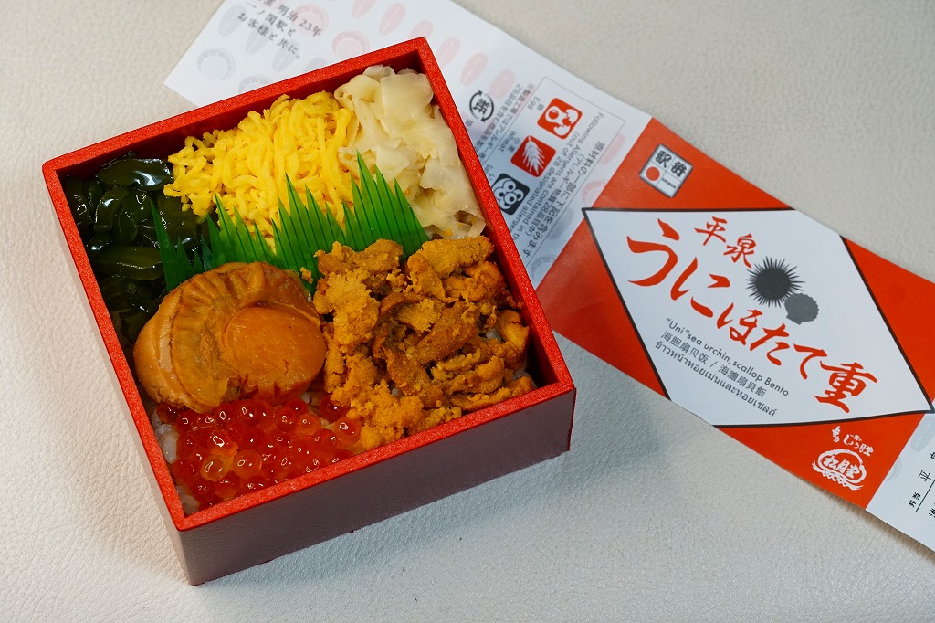 岩手県のJR東北本線一ノ関駅などで駅弁を販売する斎藤松月堂は、2023(令和5)年7月1日(土)に一ノ関駅や東京駅などで「平泉うにほたて重」(1,680円)を発売。1992年に発売し東京駅で人気の一ノ関駅弁「平泉うにごはん」について、ウニなど原材料費の価格高騰により6月で販売を休止、2021年発売の「平泉うにほたてごはん」をリニューアルすることで、新商品に置き換えたもの。茶飯を蒸しウニやホタテ煮などで覆う。