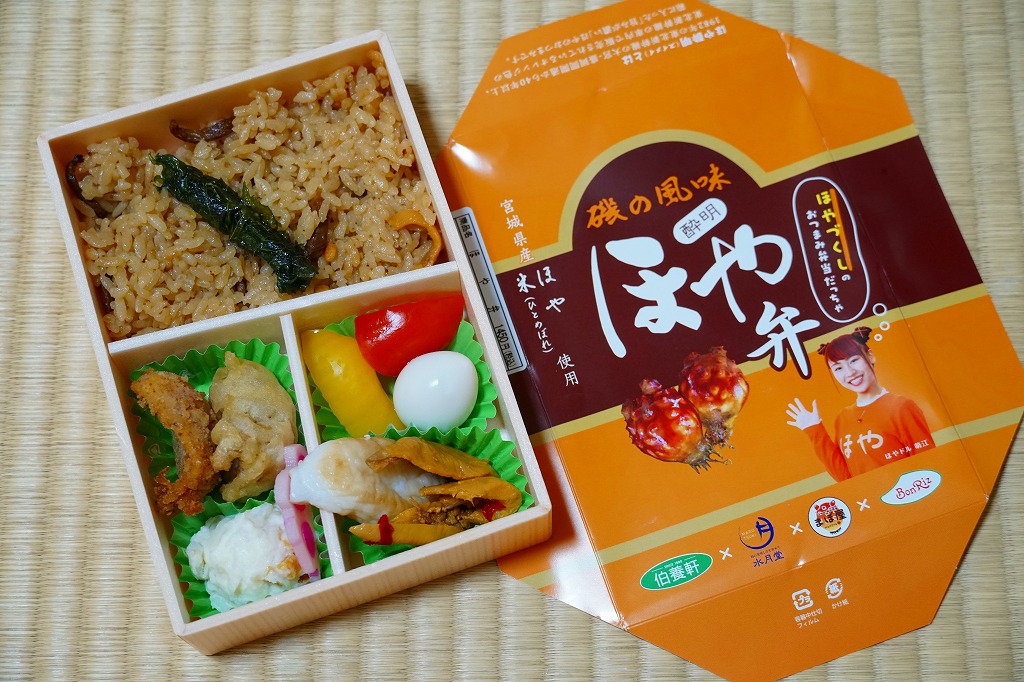 宮城県のJR東北本線仙台駅で駅弁が取り扱われるウェルネス伯養軒は、2023(令和5)年9月1日(金)に新作の駅弁「ほや弁」(1,450円)を発売。1982年6月に開業した東北新幹線の車内販売で親しまれた、水月堂物産の人気商品「ほや酔明」の紙箱のデザインを掛紙に使用、中身はほや酔明の炊込飯、ほや酔明入りポテトサラダ、ホヤの天ぷら、唐揚げ、酒蒸しなどのホヤづくし。仙台駅のコンビニ「ニューデイズ」で販売。